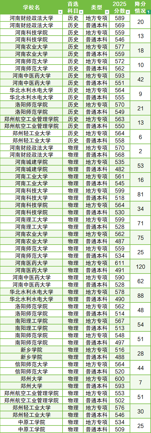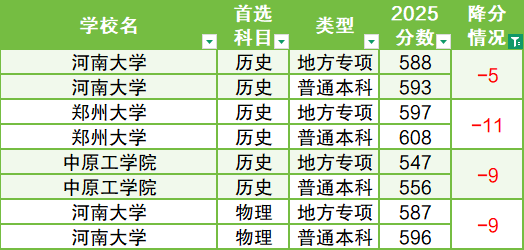 2025年河南地方專項計劃分?jǐn)?shù)不降反增的院校有: