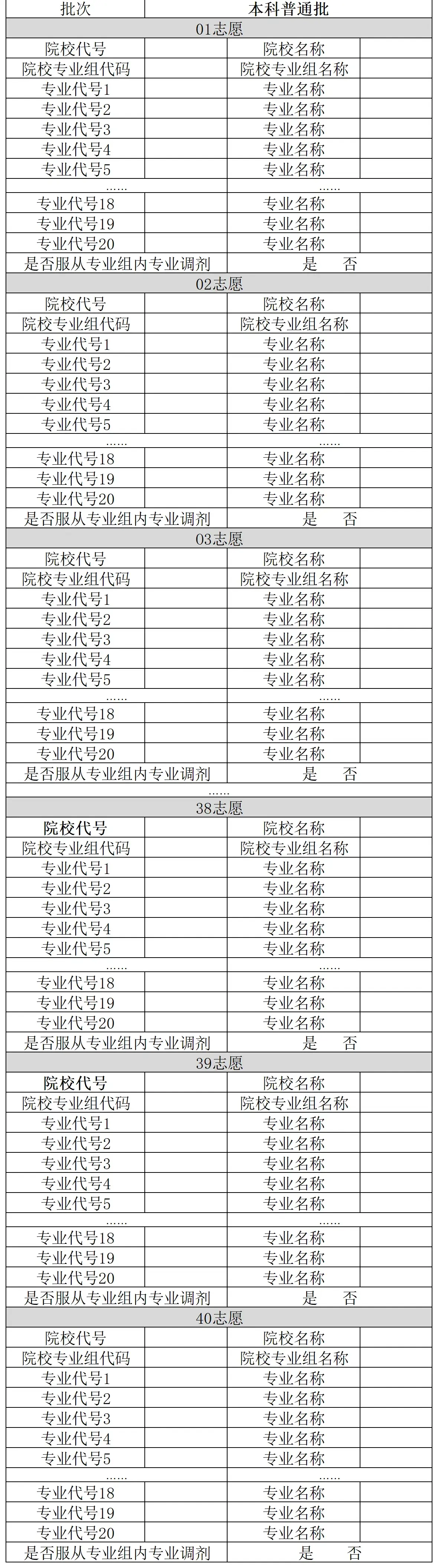 下面是廣西新高考志愿樣表模板: