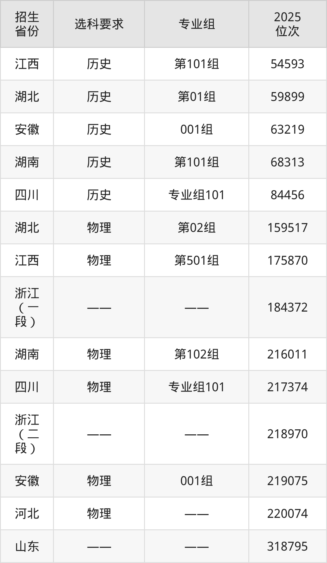 湖州職業(yè)技術(shù)學(xué)院2025年在全國各省的位次差異較大,最高位次是54593位(江西歷史類)、最低位次是318795位(山東)。各省具體位次請看下圖: