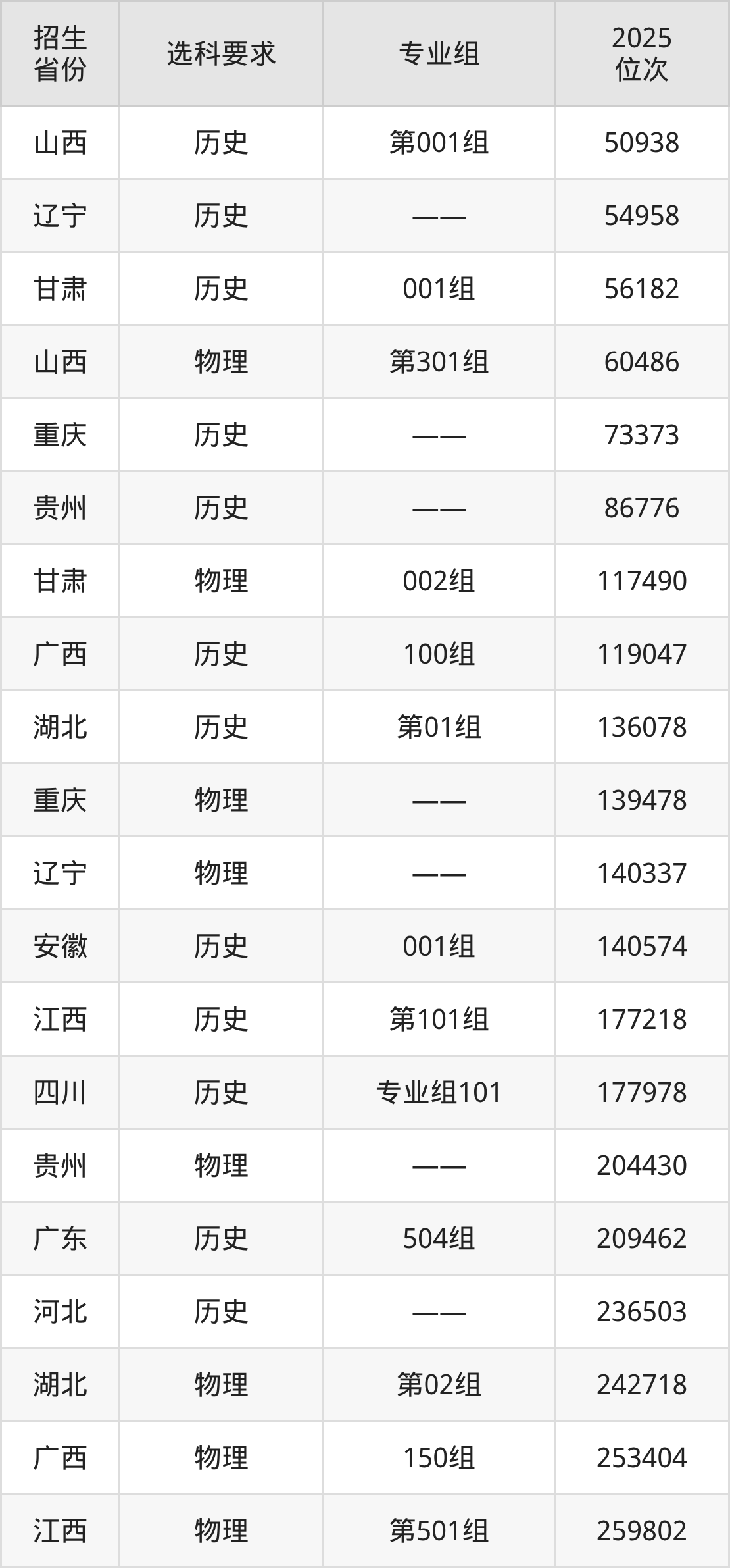 四川長(zhǎng)江職業(yè)學(xué)院2025年在全國(guó)各省的位次差異較大,最高位次是50938位(山西歷史類)、最低位次是680523位(山東)。各省具體位次請(qǐng)看下圖: