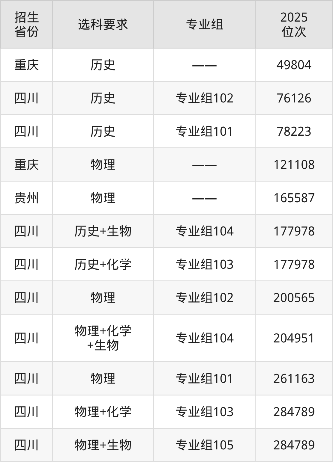樂山職業(yè)技術學院2025年在全國各省的位次差異較大,最高位次是49804位(重慶歷史類)、最低位次是284789位(四川物理類)。各省具體位次請看下圖:
