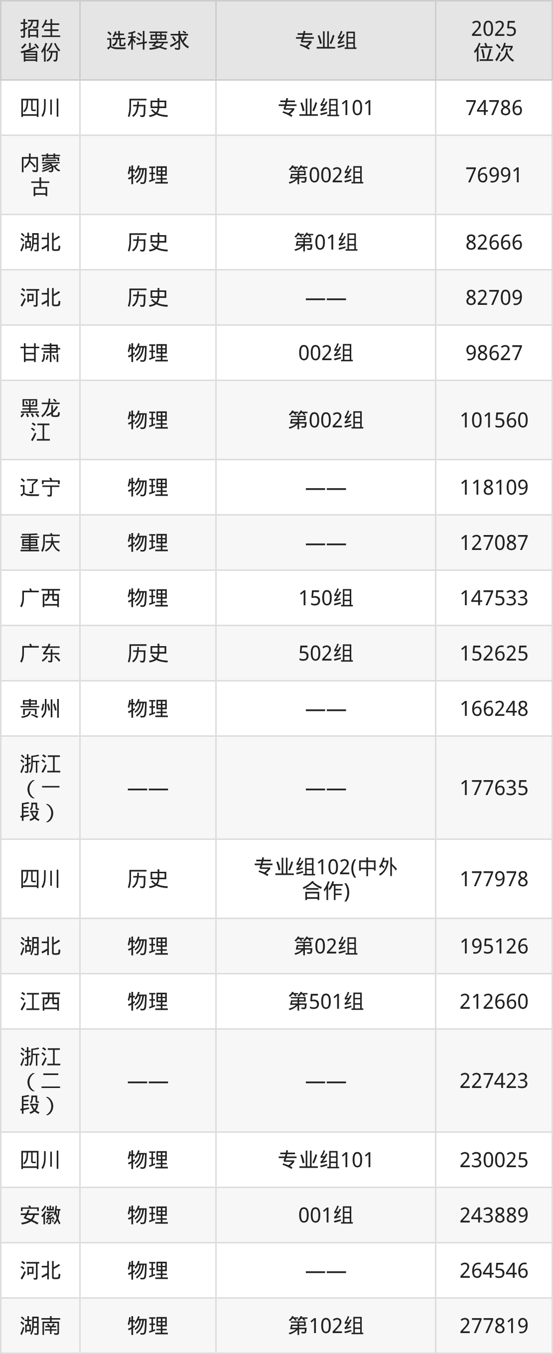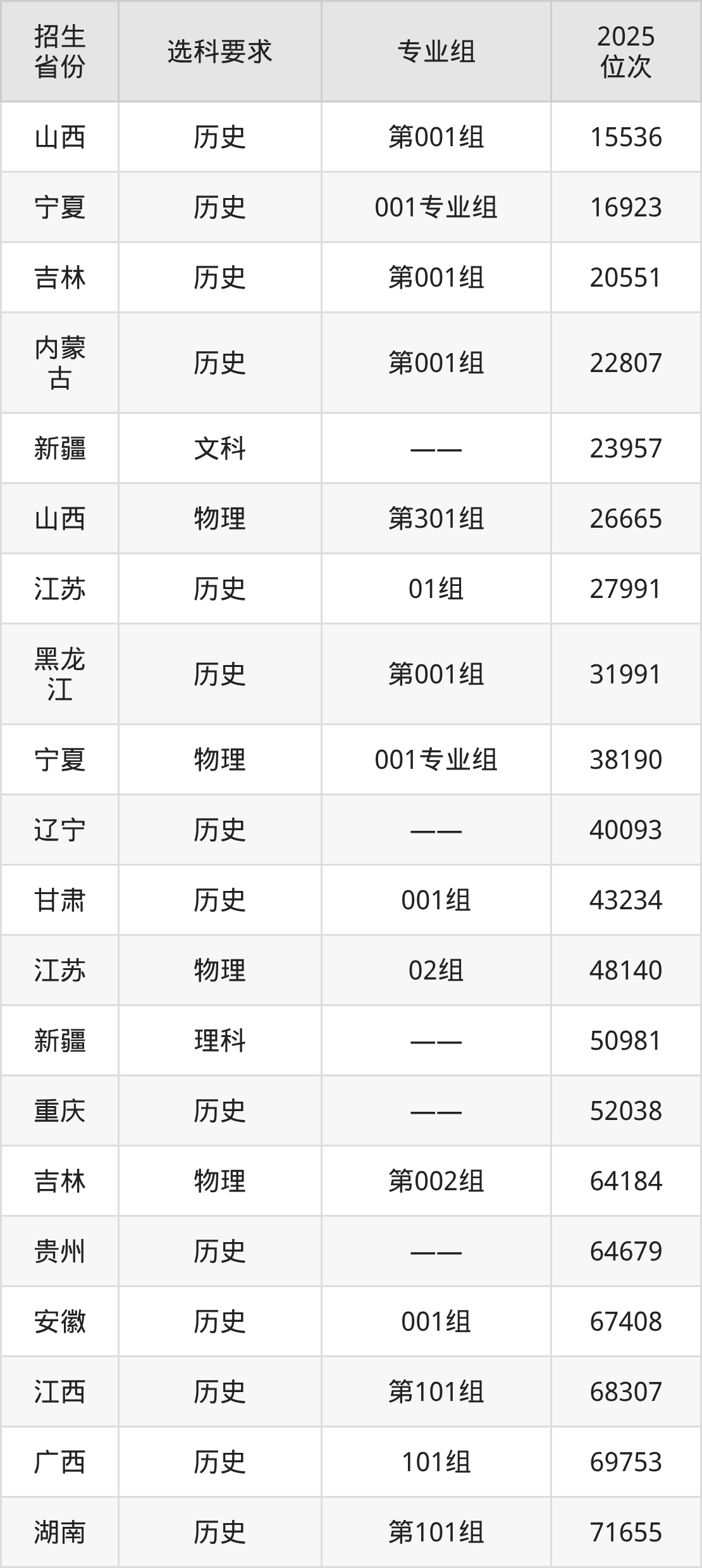 四川建筑職業(yè)技術(shù)大學(xué)2025年在全國各省的位次差異較大,最高位次是15536位(山西歷史類)、最低位次是405811位(山東)。各省具體位次請看下圖: