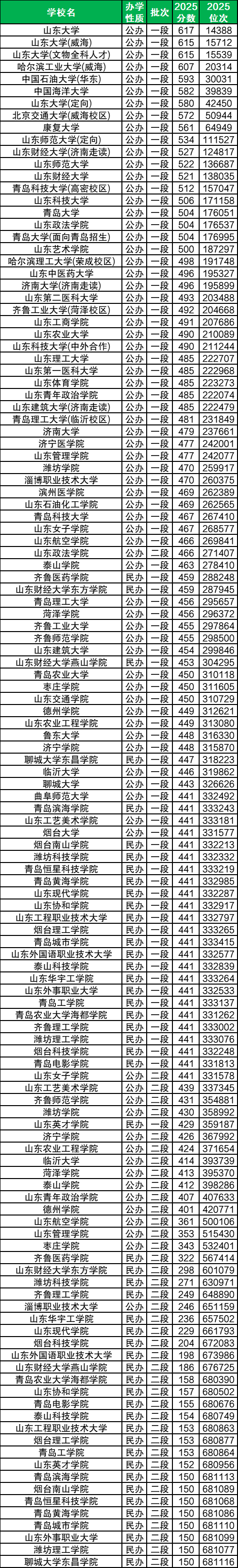 下面是2025年山東本科大學(xué)錄取分?jǐn)?shù)線及位次一覽表: