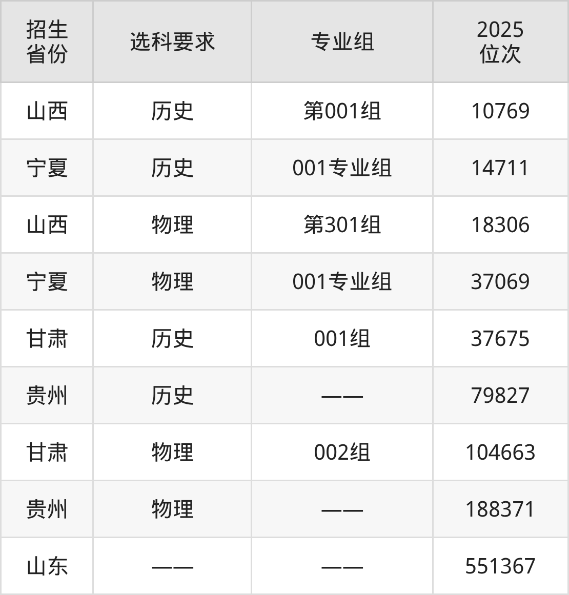 泰山護理職業(yè)學(xué)院2025年在全國各省的位次差異較大,最高位次是10769位(山西歷史類)、最低位次是551367位(山東)。各省具體位次請看下圖: