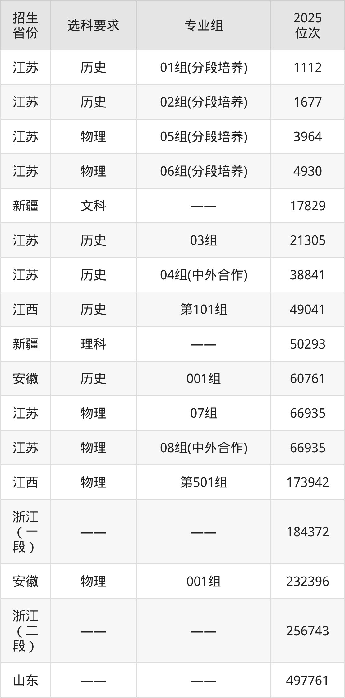 江蘇農(nóng)林職業(yè)技術(shù)學(xué)院2025年在全國各省的位次差異較大,最高位次是1112位(江蘇歷史類)、最低位次是497761位(山東)。各省具體位次請看下圖: