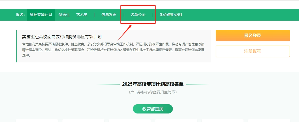 高校專項(xiàng)計(jì)劃名單公示入口直達(dá)鏈接: