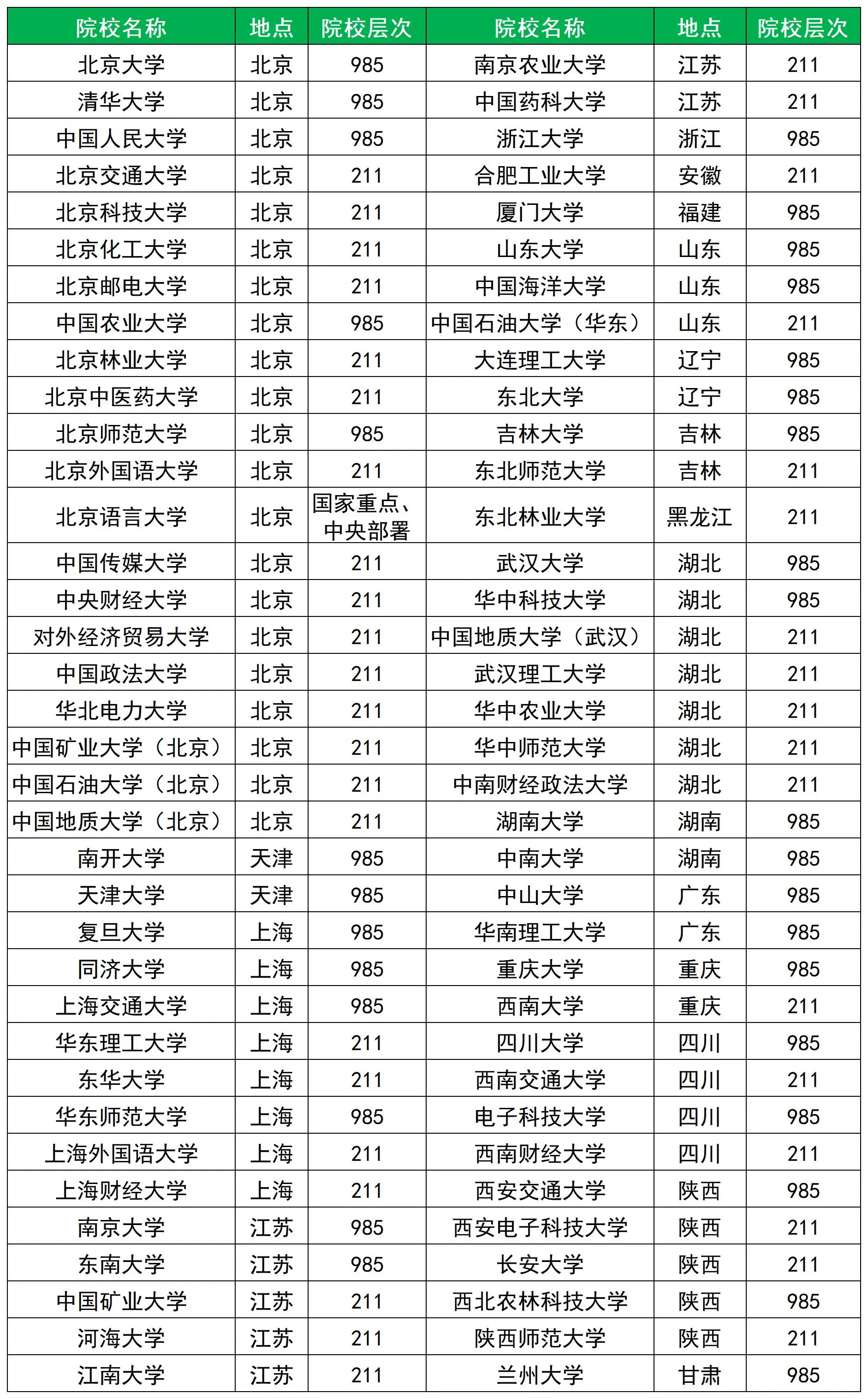 1、教育部直屬大學(xué)(72所)