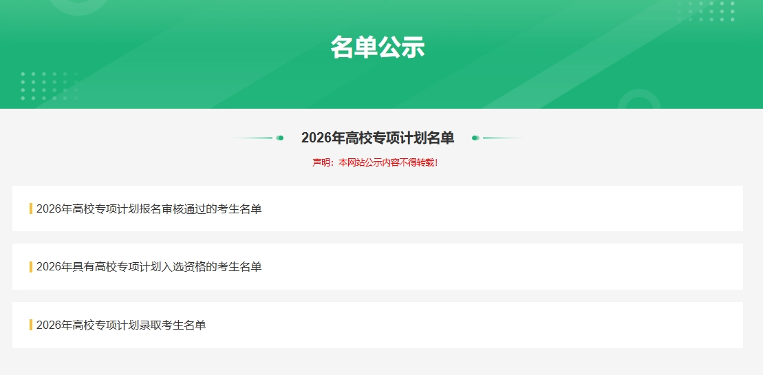 2、2026年具有高校專項(xiàng)計(jì)劃入選資格的考生名單;