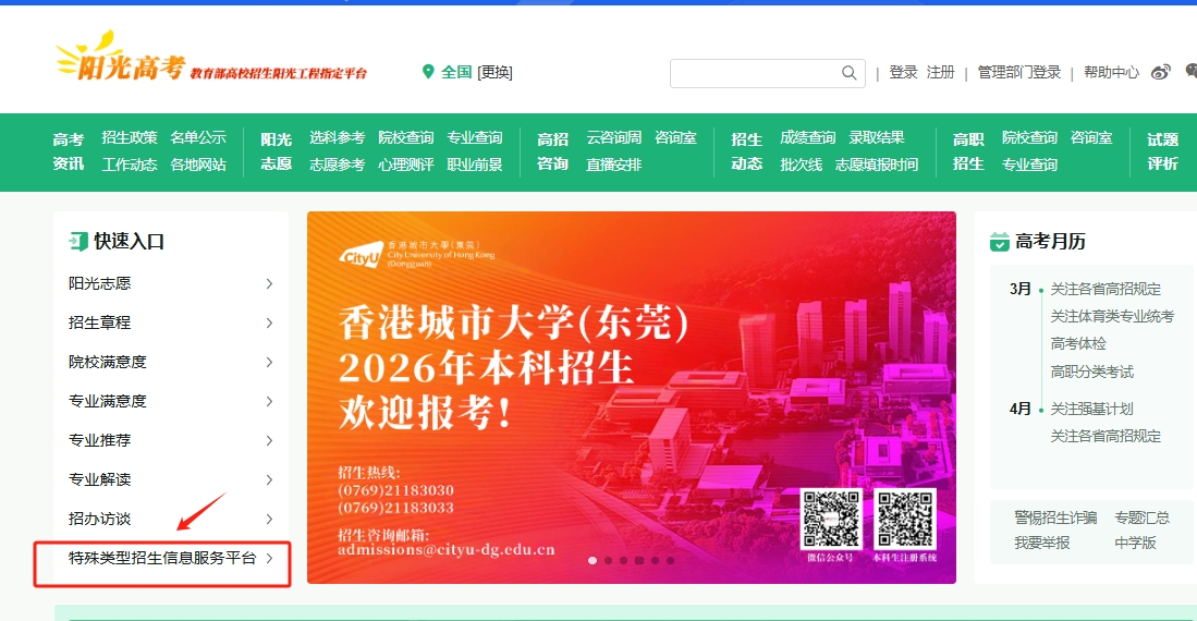 一、2026陽(yáng)光高考網(wǎng)高校專項(xiàng)計(jì)劃名單公示入口