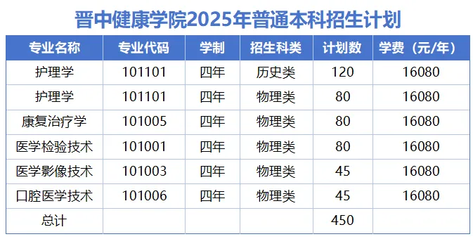 二、晉中健康學(xué)院2025錄取分?jǐn)?shù)線