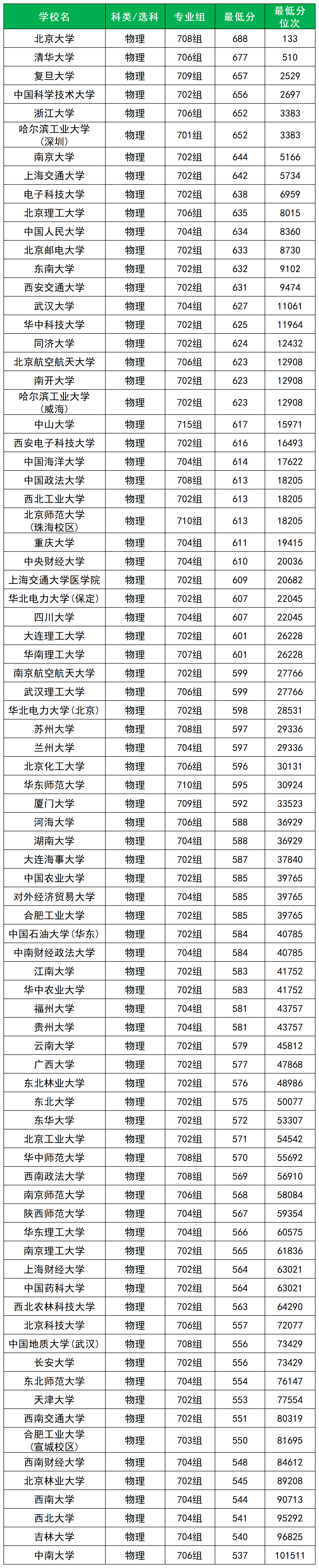 中南大學(xué):最低分537分,對應(yīng)位次101511