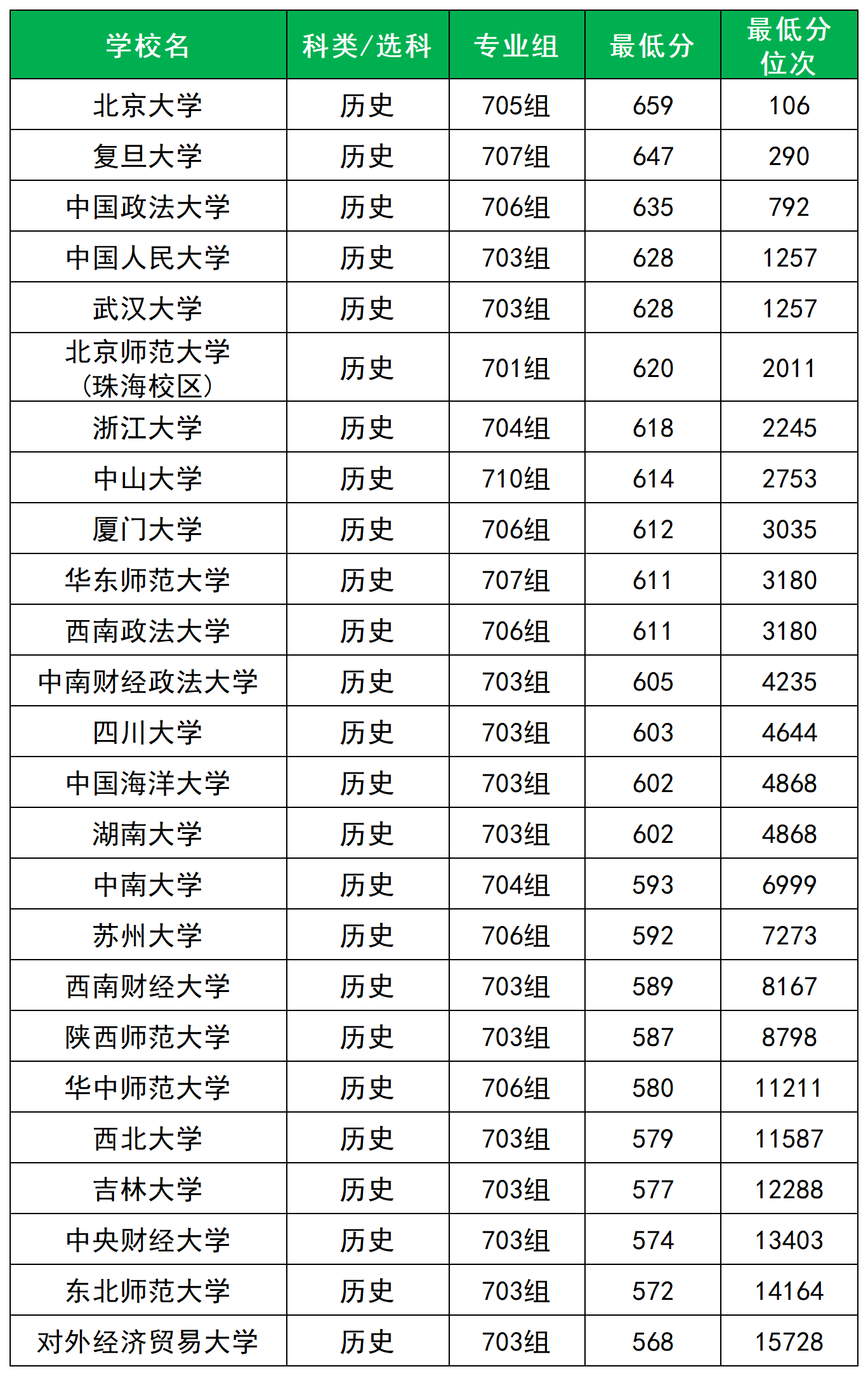 中國政法大學(xué):最低分635分,對應(yīng)位次792