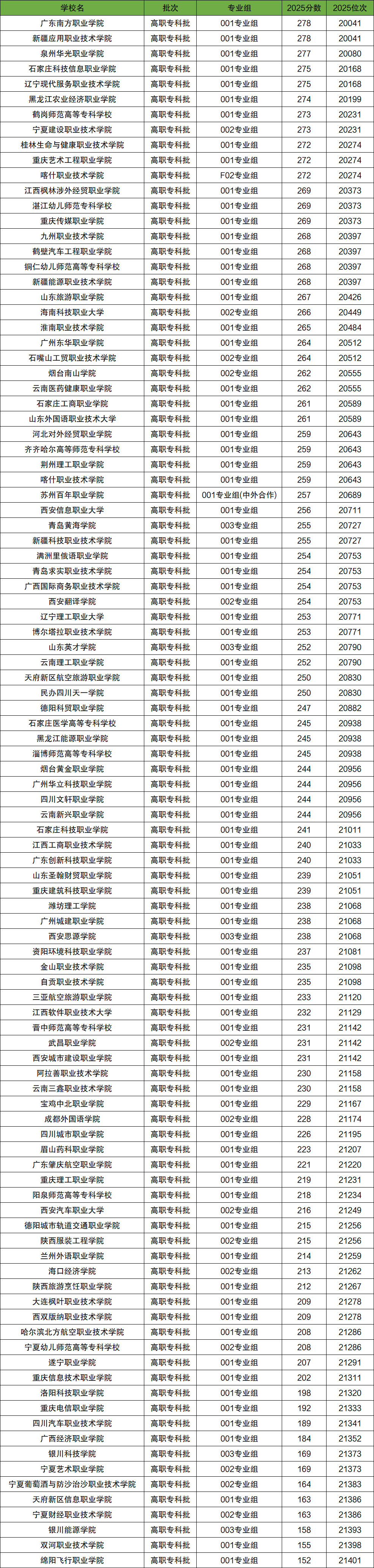 2025年全國大學(xué)在寧夏回族自治區(qū)高考錄取位次在2萬名~3萬名之間的學(xué)校有101所,對應(yīng)的分?jǐn)?shù)為278分~152分,對應(yīng)寧夏全區(qū)高考排名區(qū)間為20041-21401。