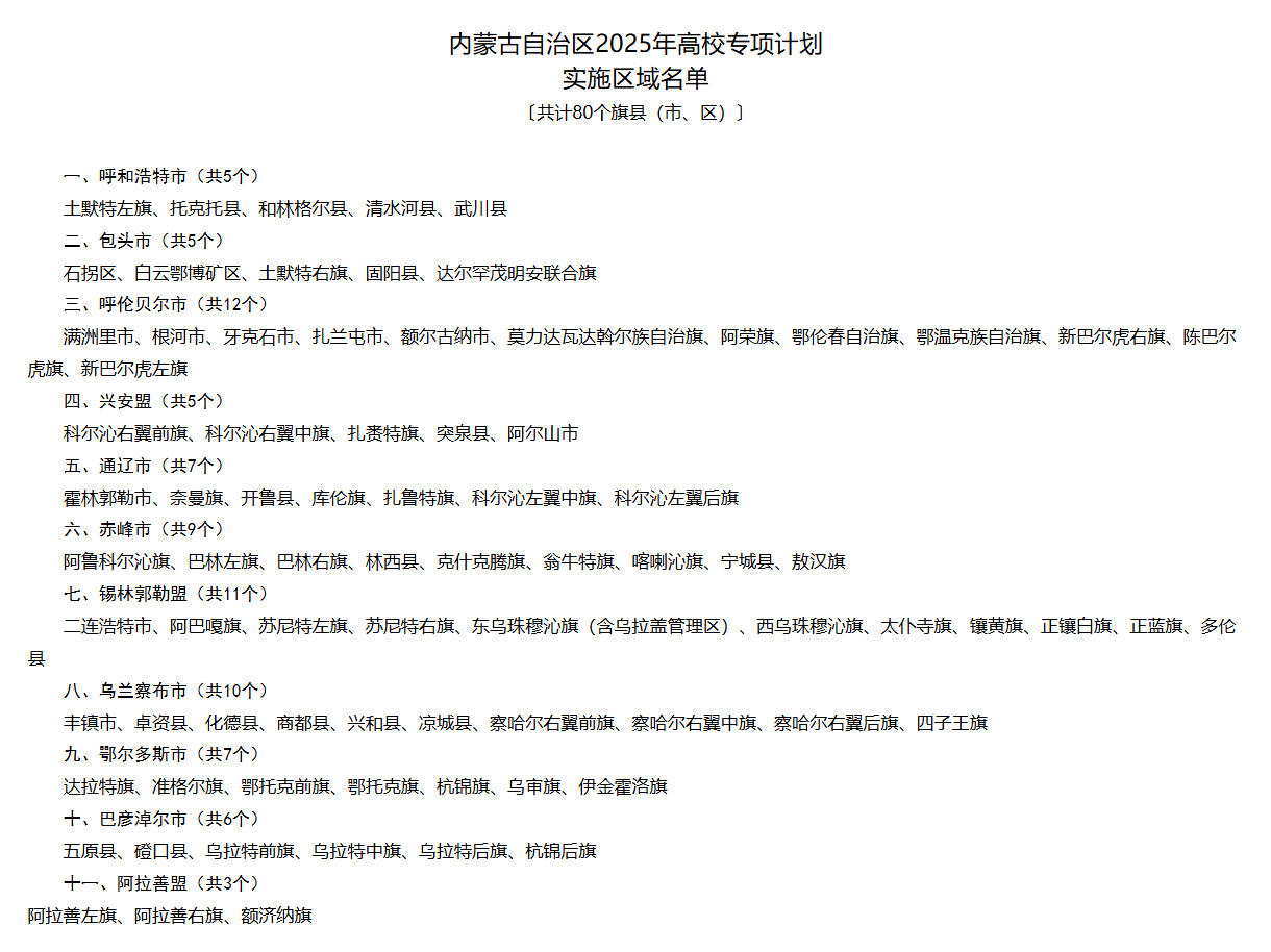 7、2025年內(nèi)蒙古高校專項計劃實施區(qū)域