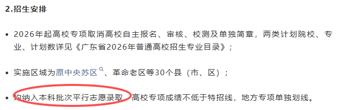2026年起高校專項(xiàng)計(jì)劃實(shí)行本科批錄?。▍⒖紡V東省,具體以本省公布為準(zhǔn)),未被錄取的考生仍然可以進(jìn)行參與后續(xù)志愿填報(bào)。
