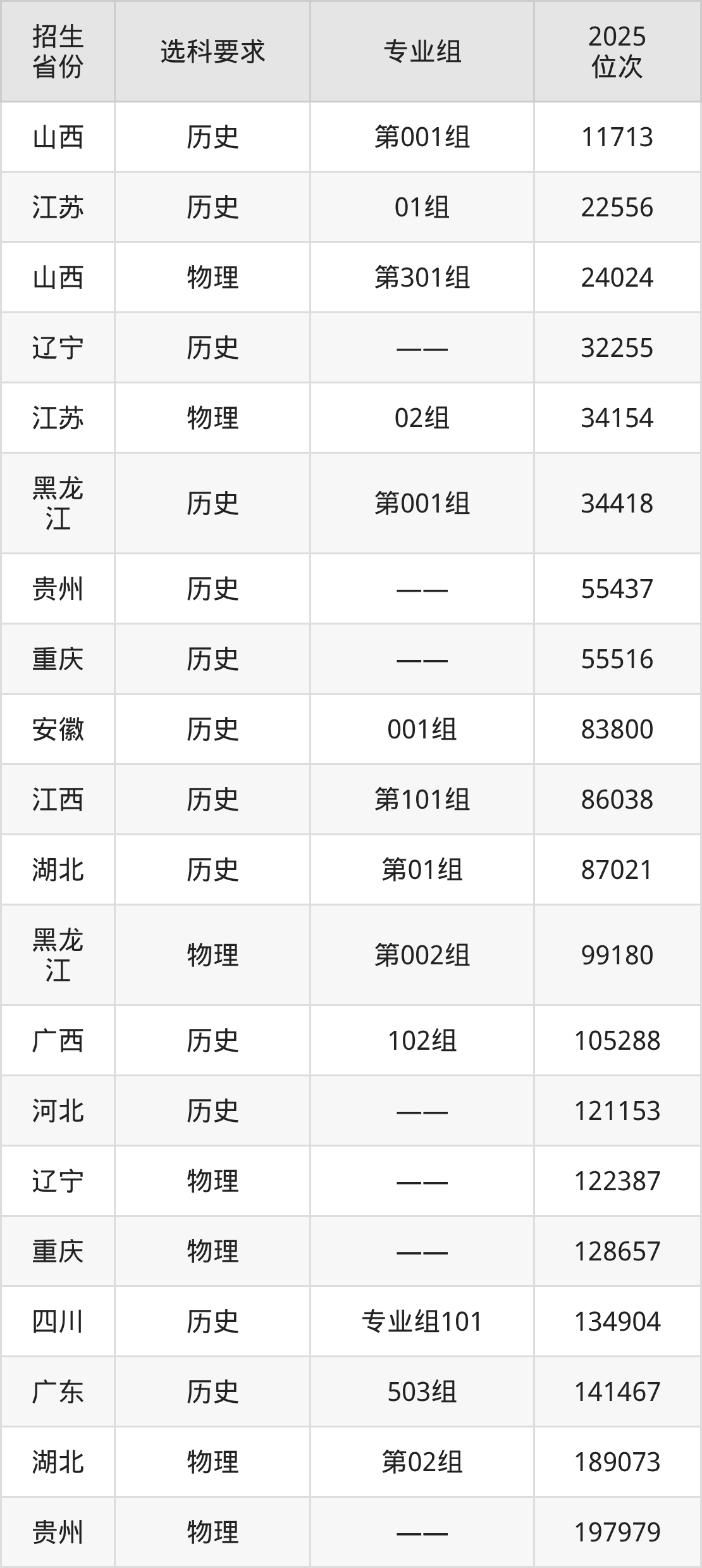合肥通用職業(yè)技術(shù)學(xué)院2025年在全國(guó)各省的位次差異較大,最高位次是11713位(山西歷史類)、最低位次是398251位(山東)。各省具體位次請(qǐng)看下圖: