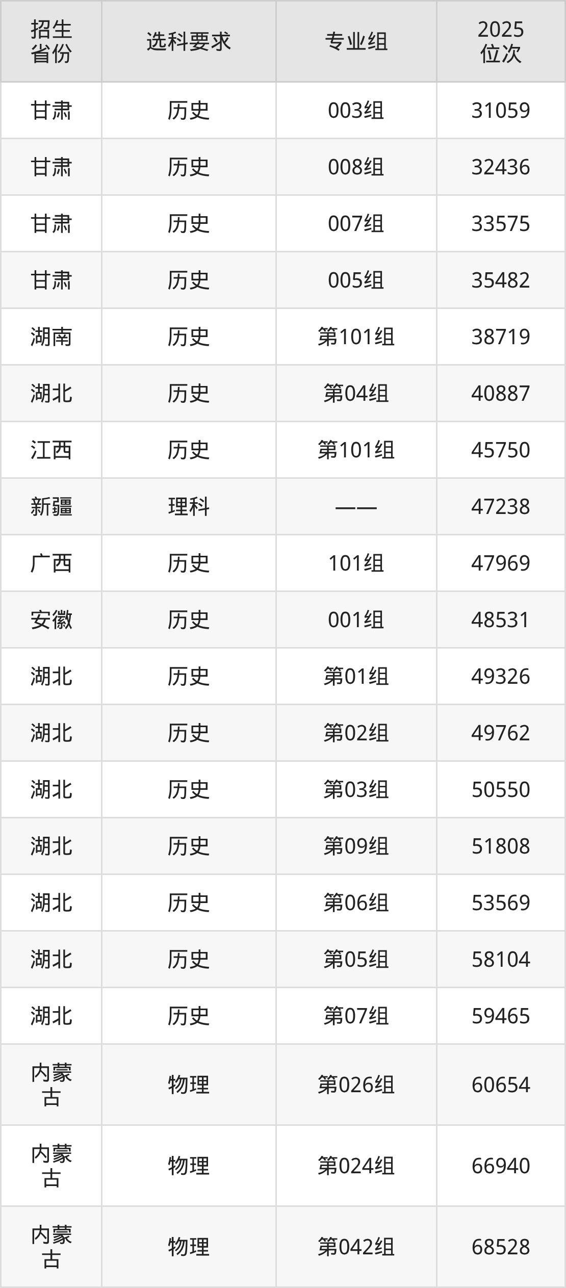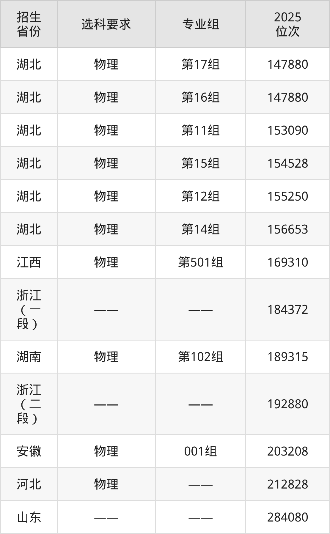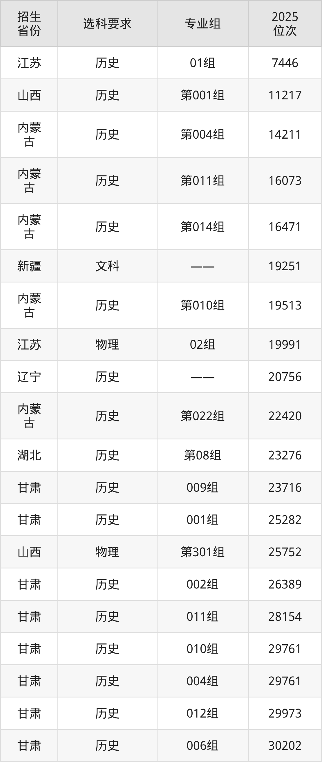 浙江經(jīng)貿(mào)職業(yè)技術(shù)學(xué)院2025年在全國(guó)各省的位次差異較大,最高位次是7446位(江蘇歷史類)、最低位次是284080位(山東)。各省具體位次請(qǐng)看下圖: