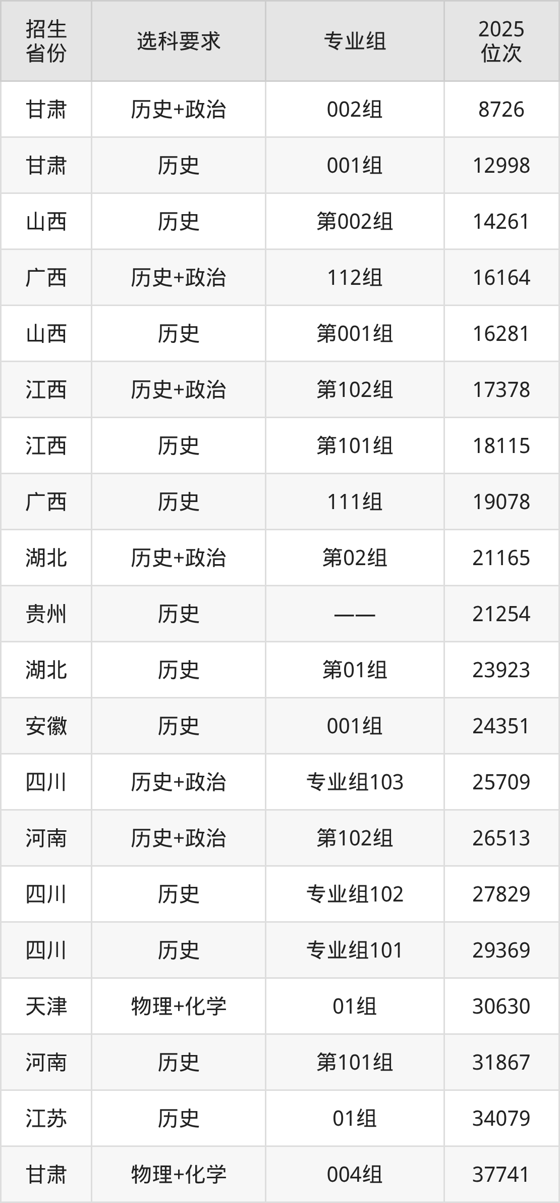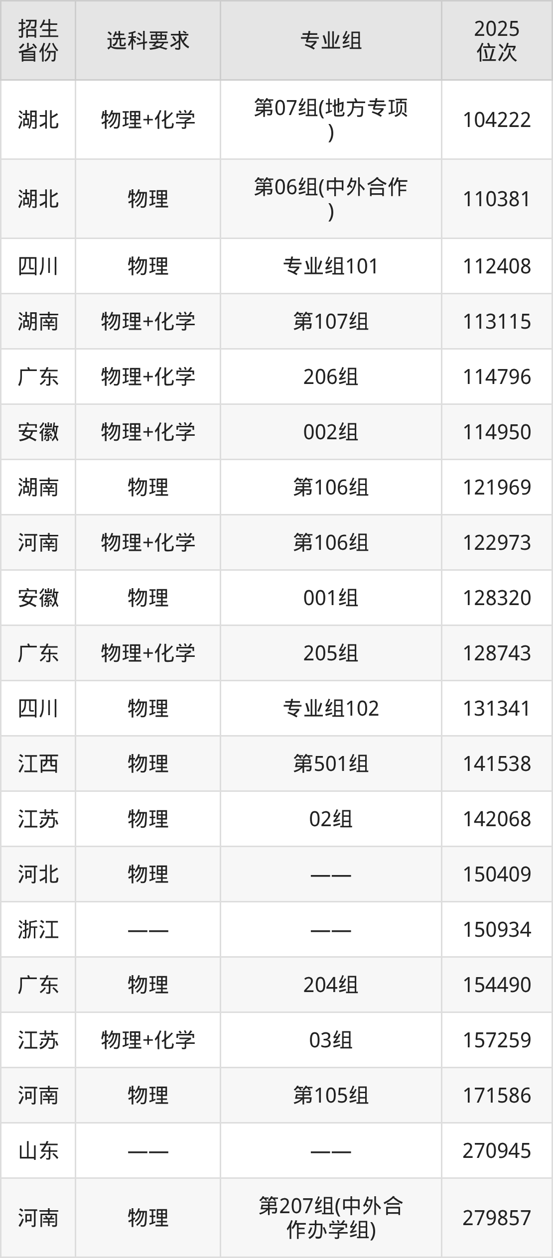 湖北工程學(xué)院2025年在全國(guó)各省的位次差異較大,最高位次是8726位(甘肅歷史類)、最低位次是279857位(河南物理類)。各省具體位次請(qǐng)看下圖: