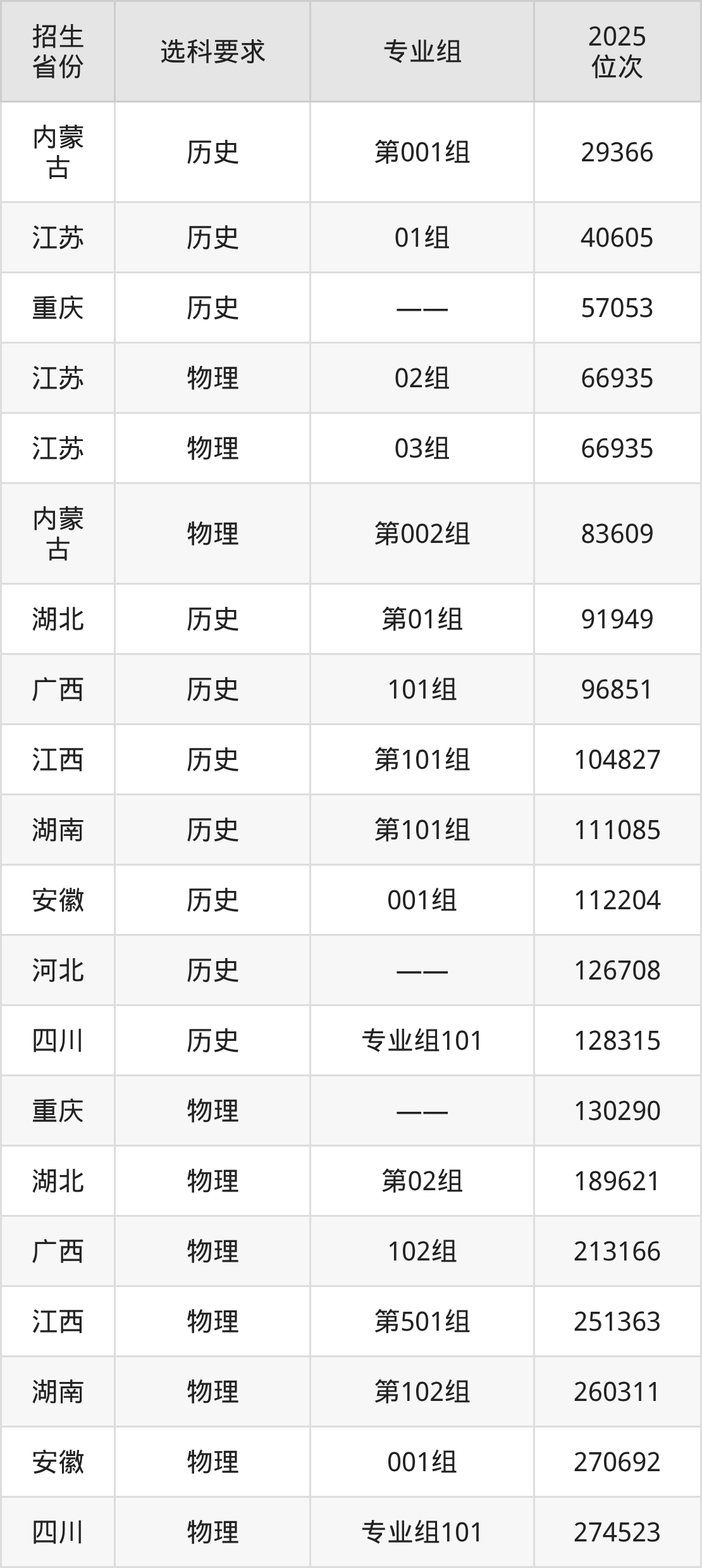 江西建設(shè)職業(yè)技術(shù)學(xué)院2025年在全國(guó)各省的位次差異較大,最高位次是29366位(內(nèi)蒙古歷史類)、最低位次是520015位(山東)。各省具體位次請(qǐng)看下圖: