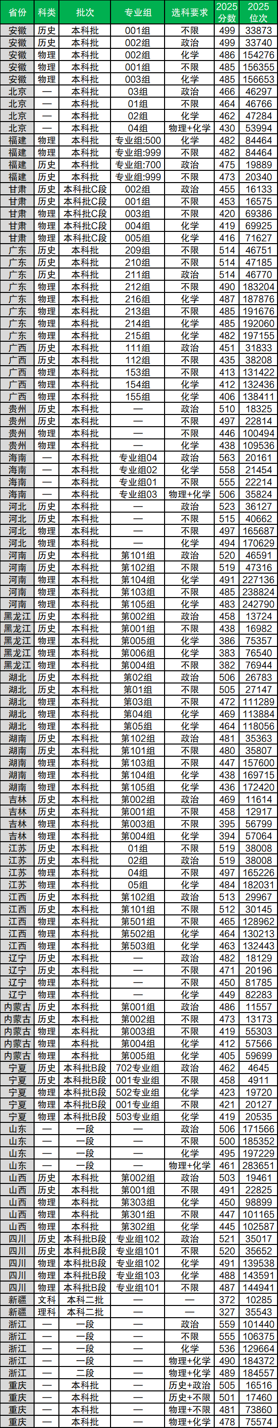 具體各省各專業(yè)組錄取分?jǐn)?shù)線可直接見(jiàn)下表(滑動(dòng)查閱):