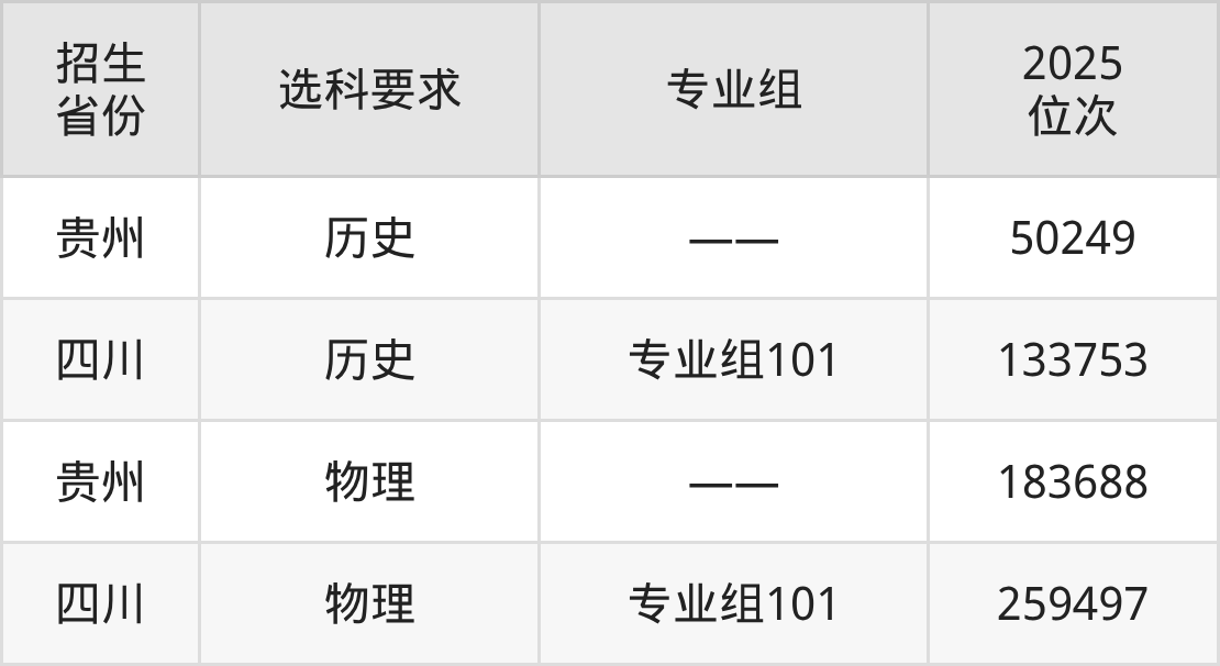 云南國防工業(yè)職業(yè)技術(shù)學(xué)院2025年在全國各省的位次差異較大,最高位次是50249位(貴州歷史類)、最低位次是259497位(四川物理類)。各省具體位次請看下圖: