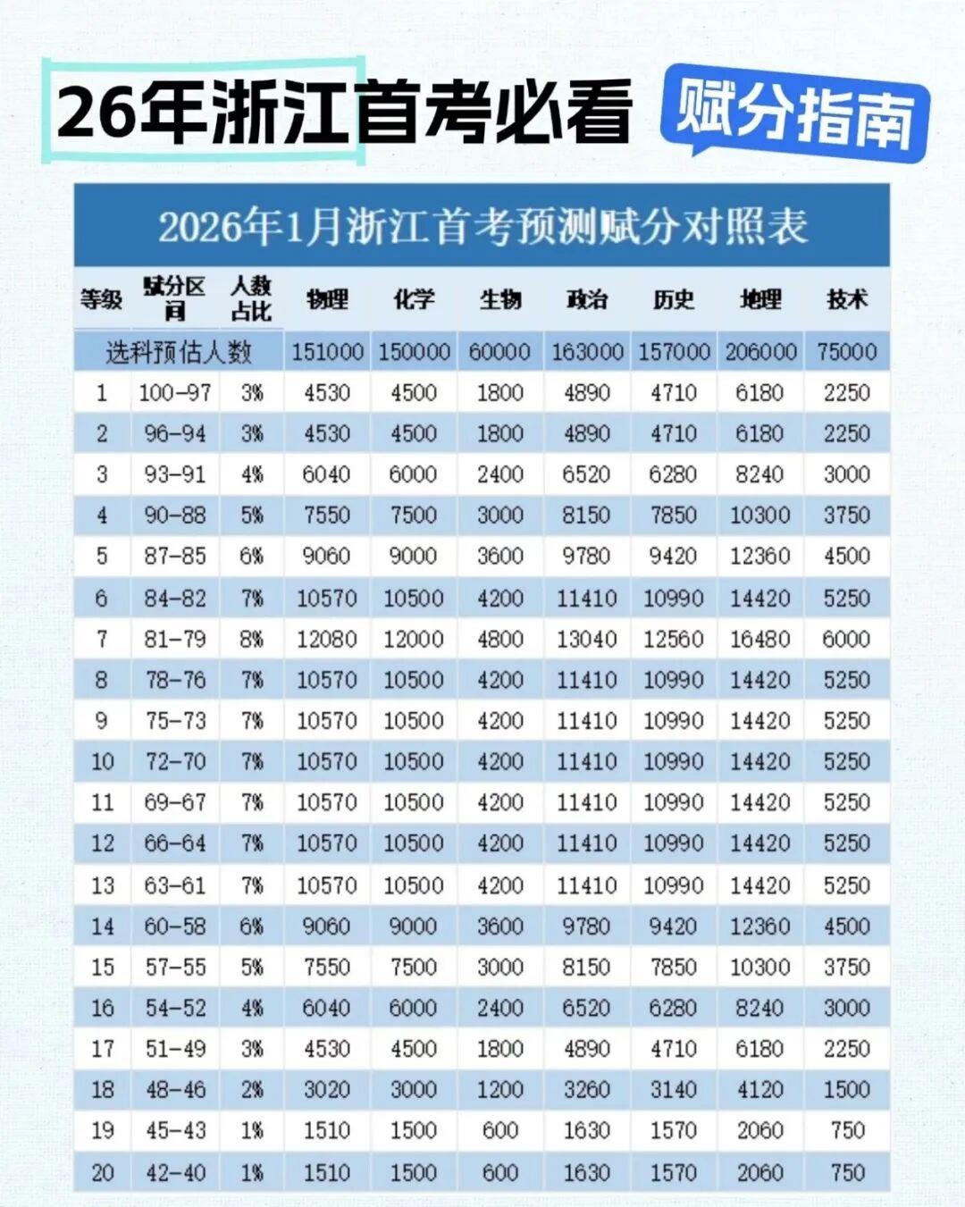 2026年浙江首考預(yù)測賦分對(duì)照表如下: