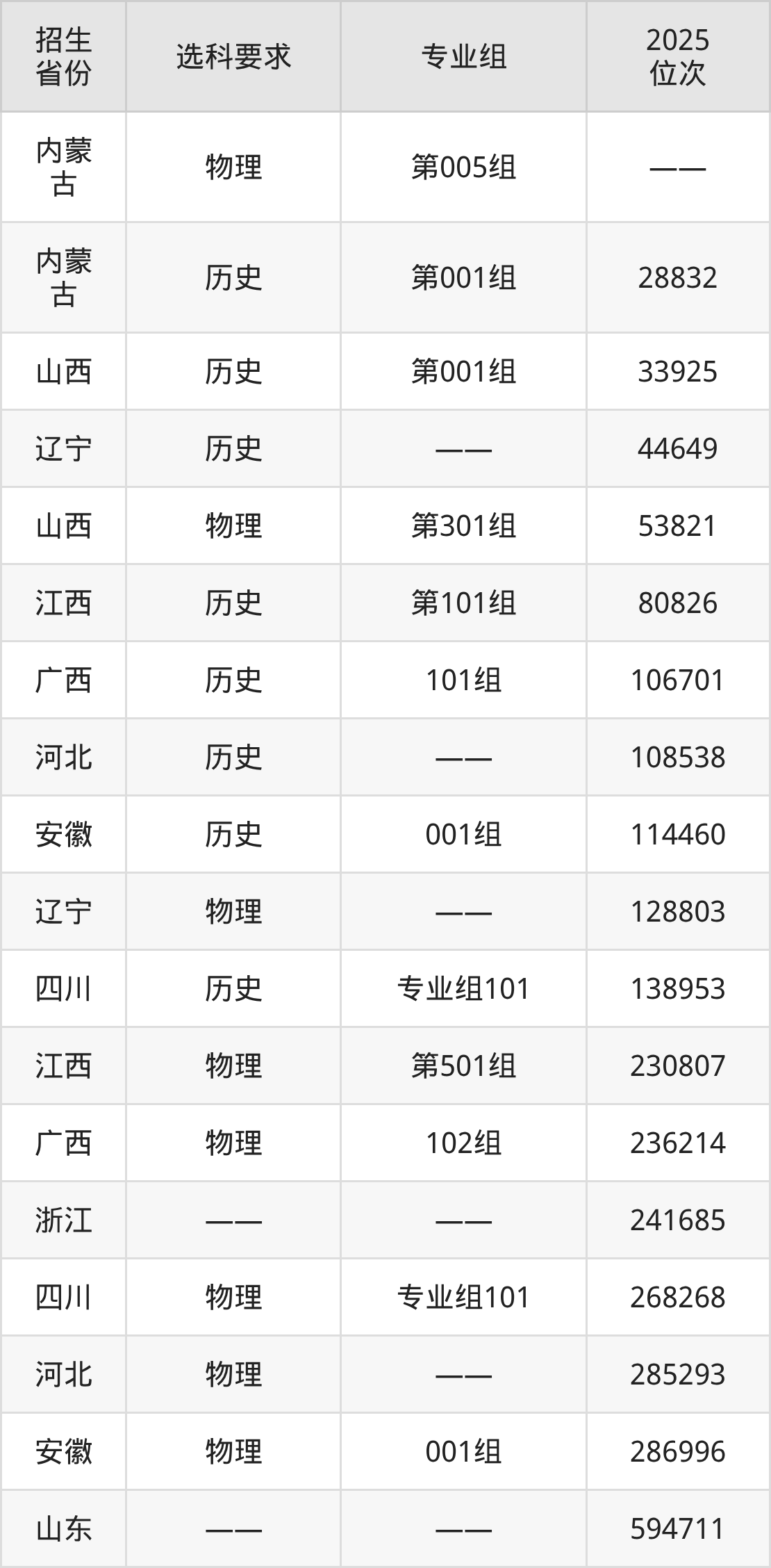 山東城市建設(shè)職業(yè)學(xué)院2025年在全國(guó)各省的位次差異較大,最高位次是28832位(內(nèi)蒙古歷史類)、最低位次是594711位(山東)。各省具體位次請(qǐng)看下圖: