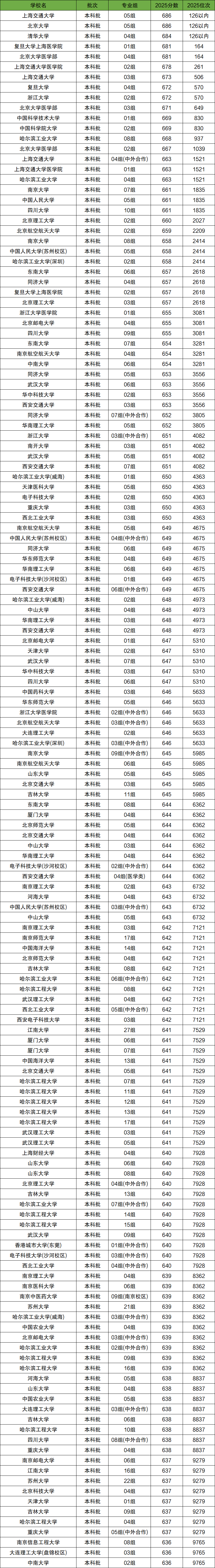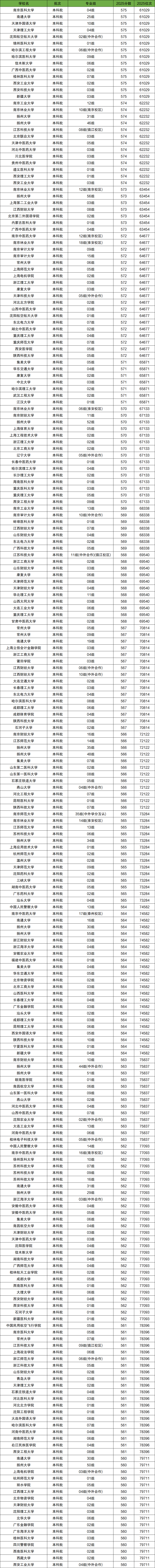 2025年全國大學(xué)在江蘇省高考錄取位次在6萬名~8萬名之間的學(xué)校有139所,對(duì)應(yīng)的分?jǐn)?shù)為575分~560分,對(duì)應(yīng)江蘇全省高考排名區(qū)間為61029-79711。