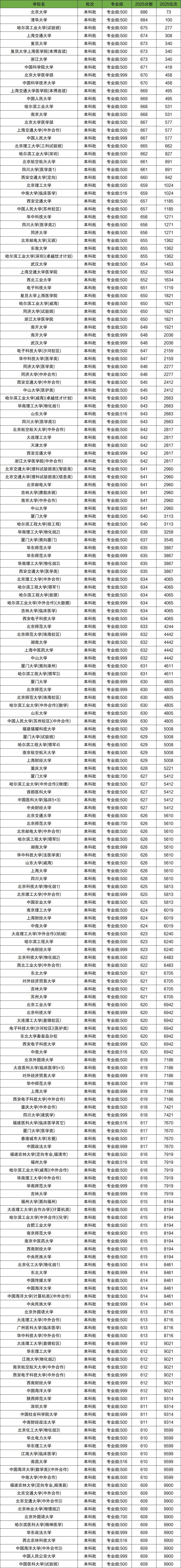 由于文章中篇幅有限,將重點(diǎn)說明福建高考物理類排名前1萬名對(duì)應(yīng)的大學(xué)、6萬名~8萬名對(duì)應(yīng)的大學(xué)。