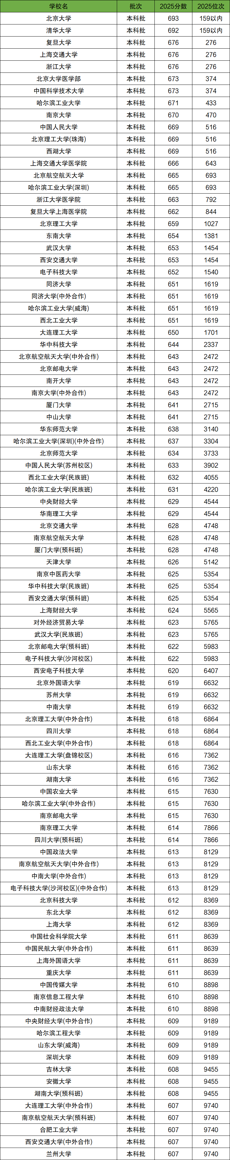 重慶前1萬名能上的大學(xué)有北京大學(xué)、清華大學(xué)、復(fù)旦大學(xué)等,知道全國大學(xué)在重慶的分?jǐn)?shù)線及位次排名非常重要,本期將介紹2025年重慶物理類考生高考位次排名對應(yīng)的大學(xué),包括重慶高考前1萬名、6萬~8萬名能上什么大學(xué)等。