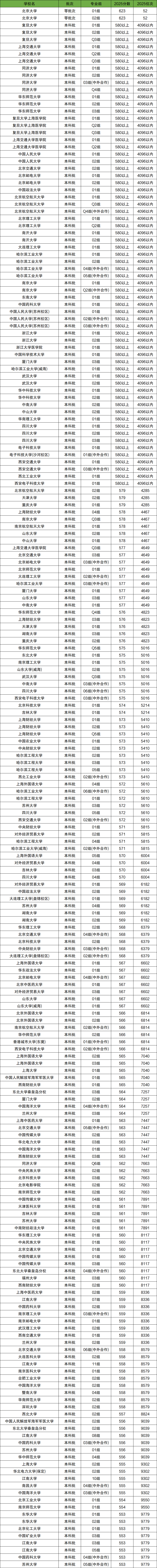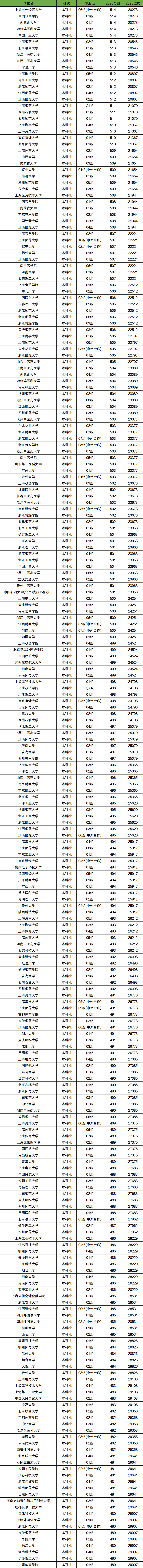 2025年全國大學在上海市高考錄取位次在2萬名~3萬名之間的學校有129所,對應的分數(shù)為514分~480分,對應上海全市高考排名區(qū)間為20273-29907。