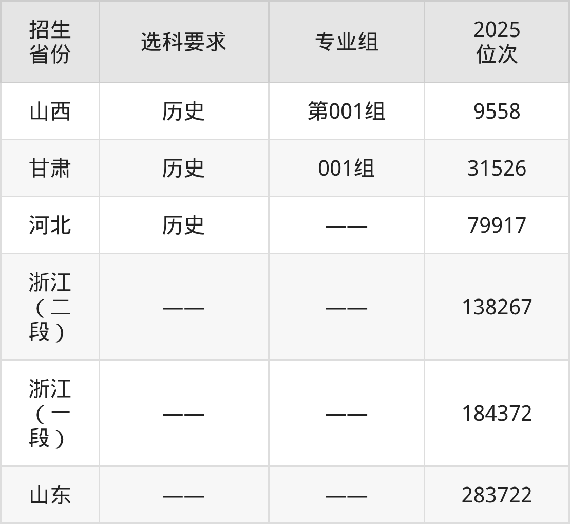 河南檢察職業(yè)學(xué)院2025年在全國各省的位次差異較大,最高位次是9558位(山西歷史類)、最低位次是283722位(山東)。各省具體位次請(qǐng)看下圖: