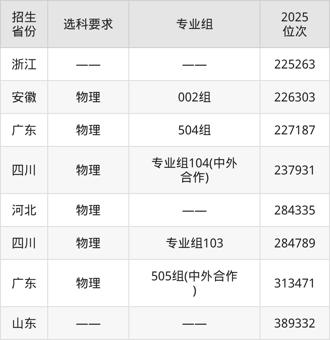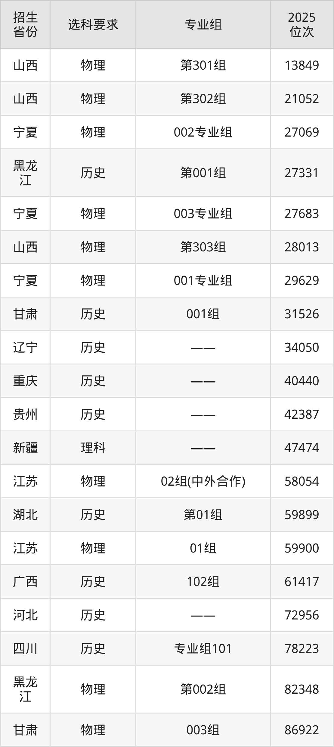 重慶工程職業(yè)技術學院2025年在全國各省的位次差異較大,最高位次是13849位(山西物理類)、最低位次是389332位(山東)。各省具體位次請看下圖: