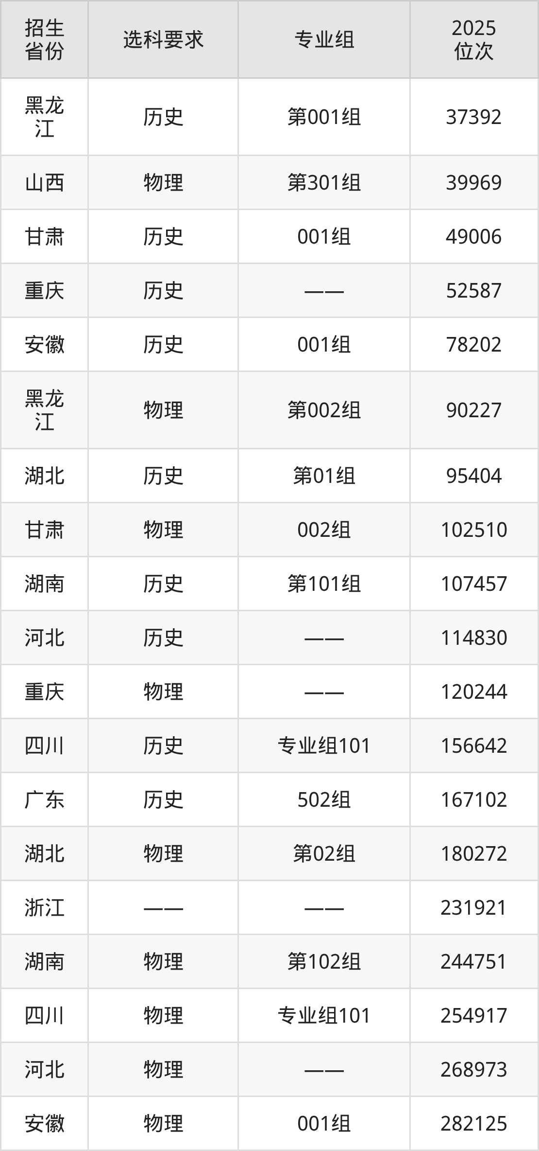 宣城職業(yè)技術學院2025年在全國各省的位次差異較大,最高位次是37392位(黑龍江歷史類)、最低位次是282125位(安徽物理類)。各省具體位次請看下圖: