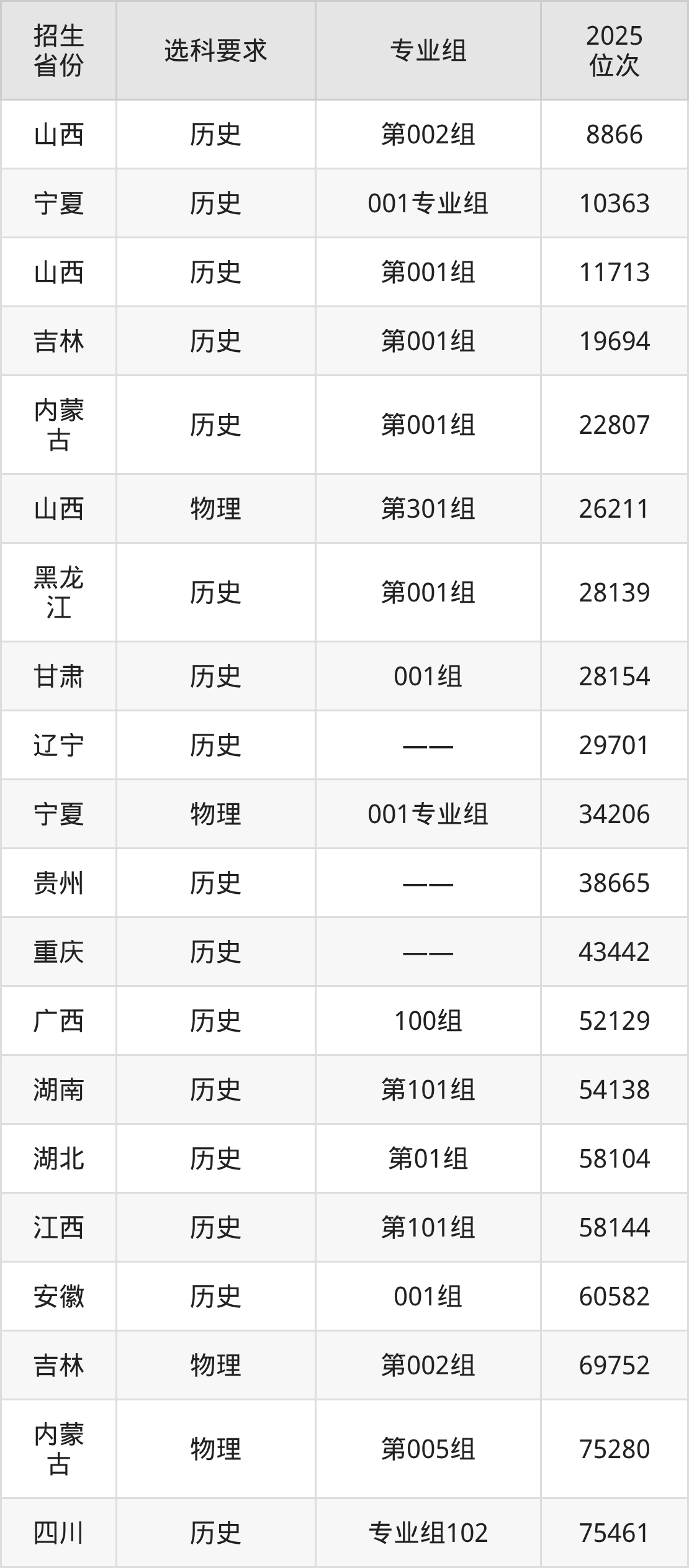 重慶工商職業(yè)學院2025年在全國各省的位次差異較大,最高位次是8866位(山西歷史類)、最低位次是403254位(山東)。各省具體位次請看下圖: