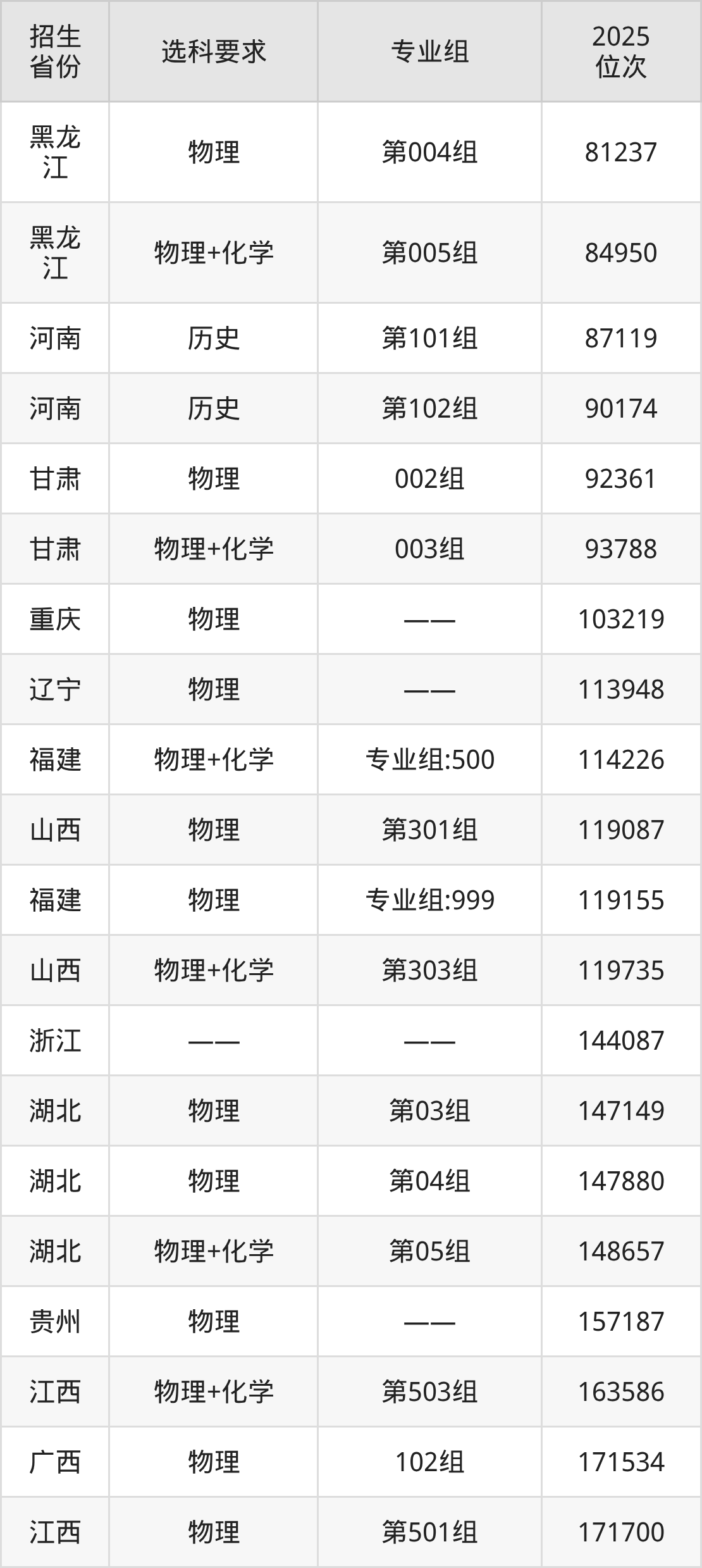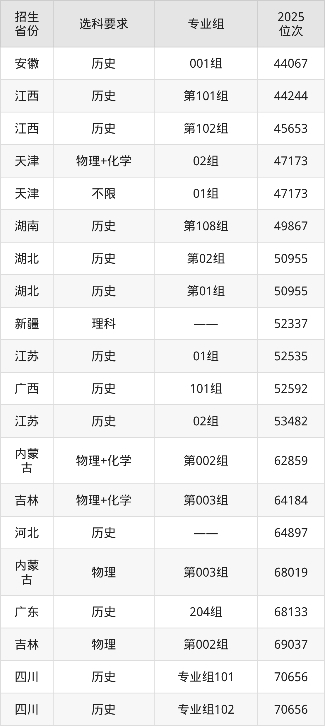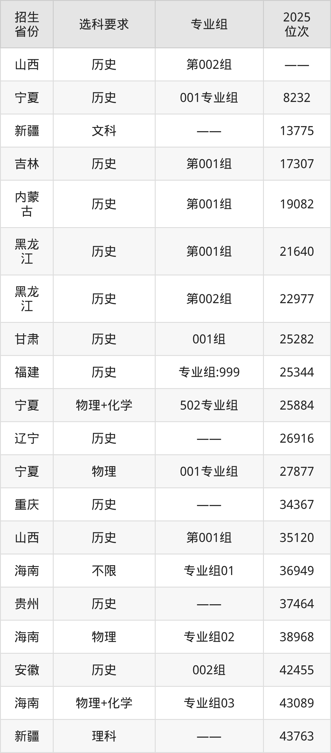 湖南涉外經濟學院2025年在全國各省的位次差異較大,最高位次是8232位(寧夏歷史類)、最低位次是348358位(河南物理類)。各省具體位次請看下圖:
