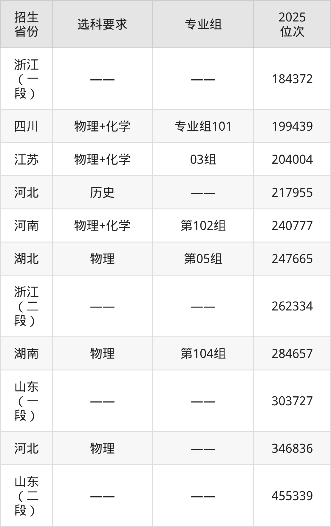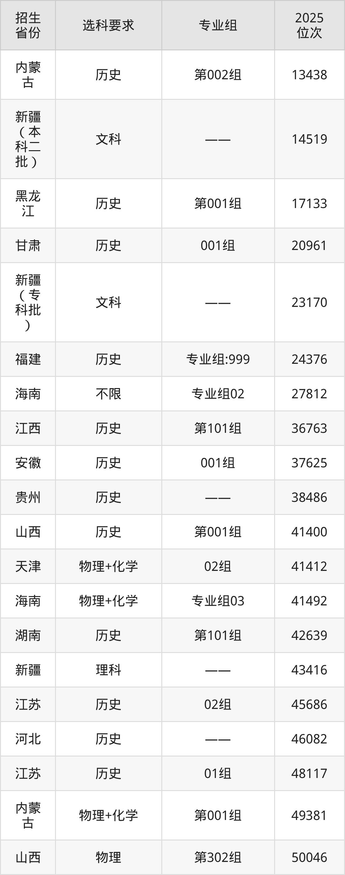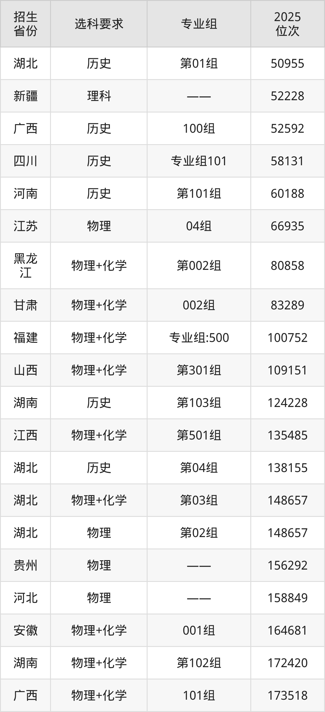 武漢工程科技學(xué)院2025年在全國各省的位次差異較大,最高位次是13438位(內(nèi)蒙古歷史類)、最低位次是455339位(山東)。各省具體位次請看下圖: