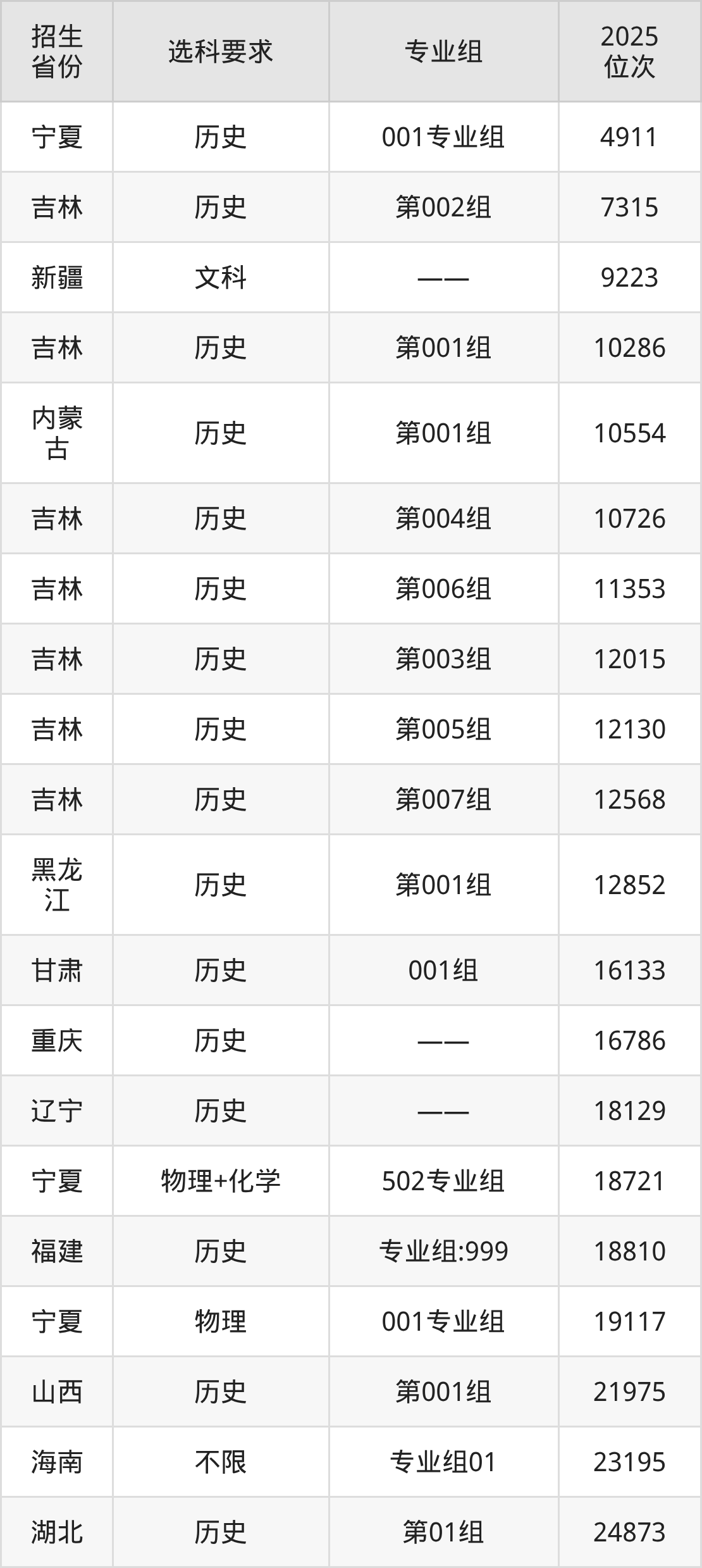 吉林工商學(xué)院2025年在全國(guó)各省的位次差異較大,最高位次是4911位(寧夏歷史類(lèi))、最低位次是266080位(山東)。各省具體位次請(qǐng)看下圖: