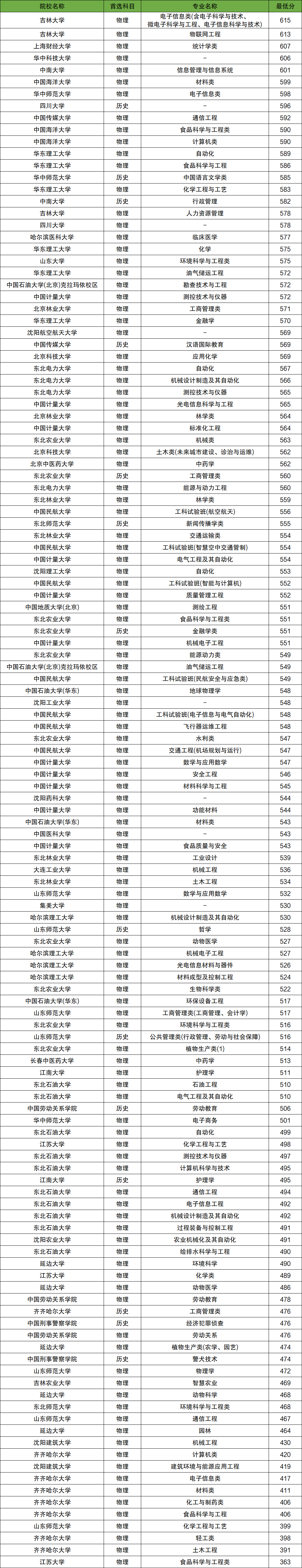 以齊齊哈爾大學(xué)為例,物理類各個(gè)專業(yè)最低分?jǐn)?shù)線如下: