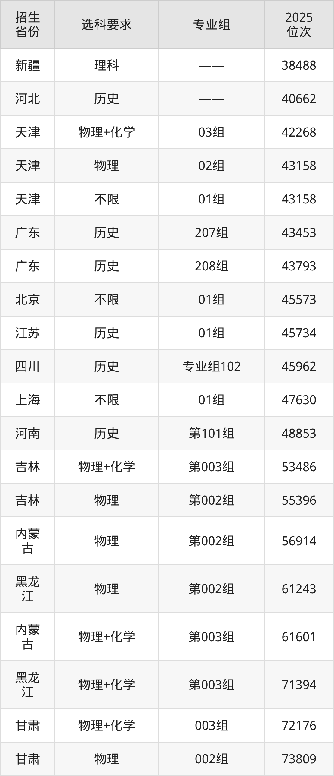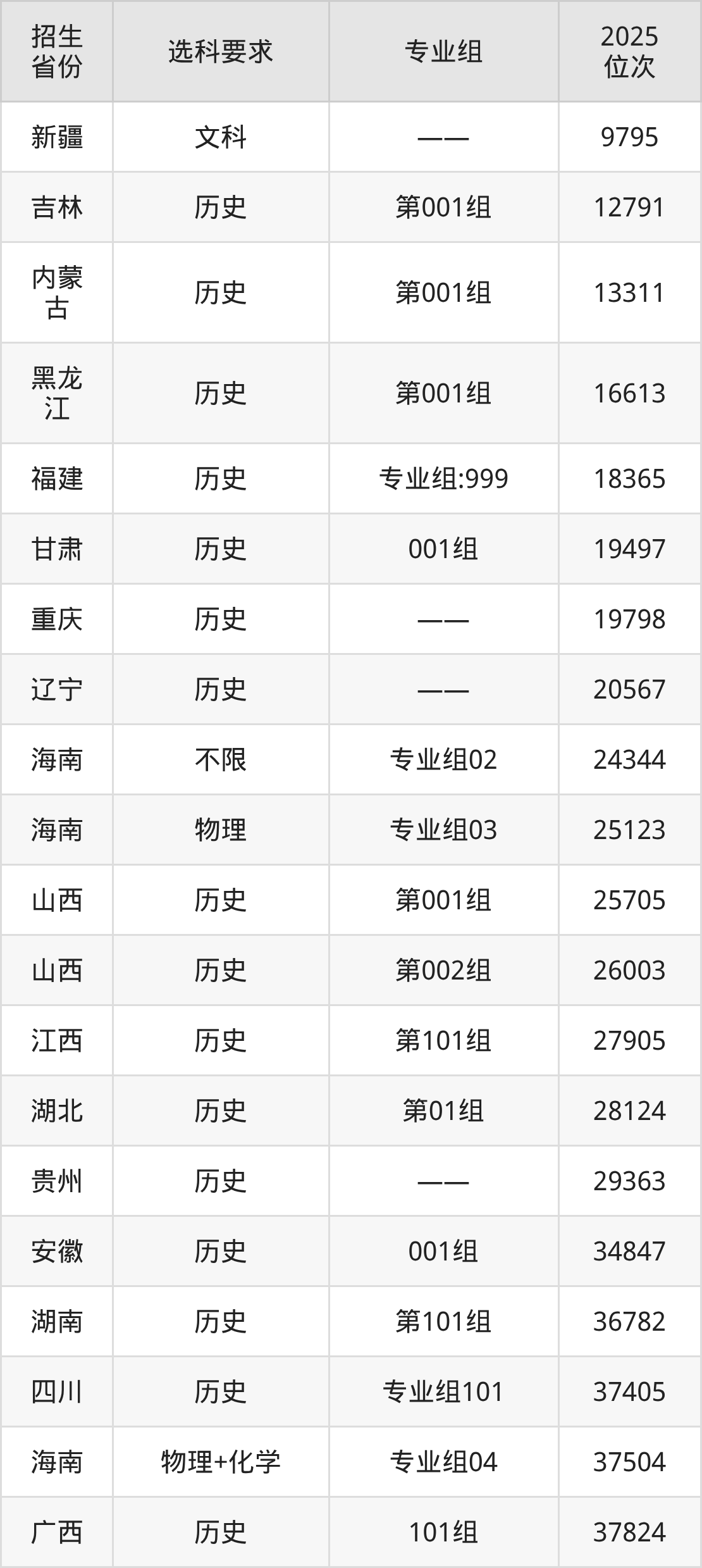 集美大學誠毅學院2025年在全國各省的位次差異較大,最高位次是9795位(新疆文科)、最低位次是273913位(山東)。各省具體位次請看下圖: