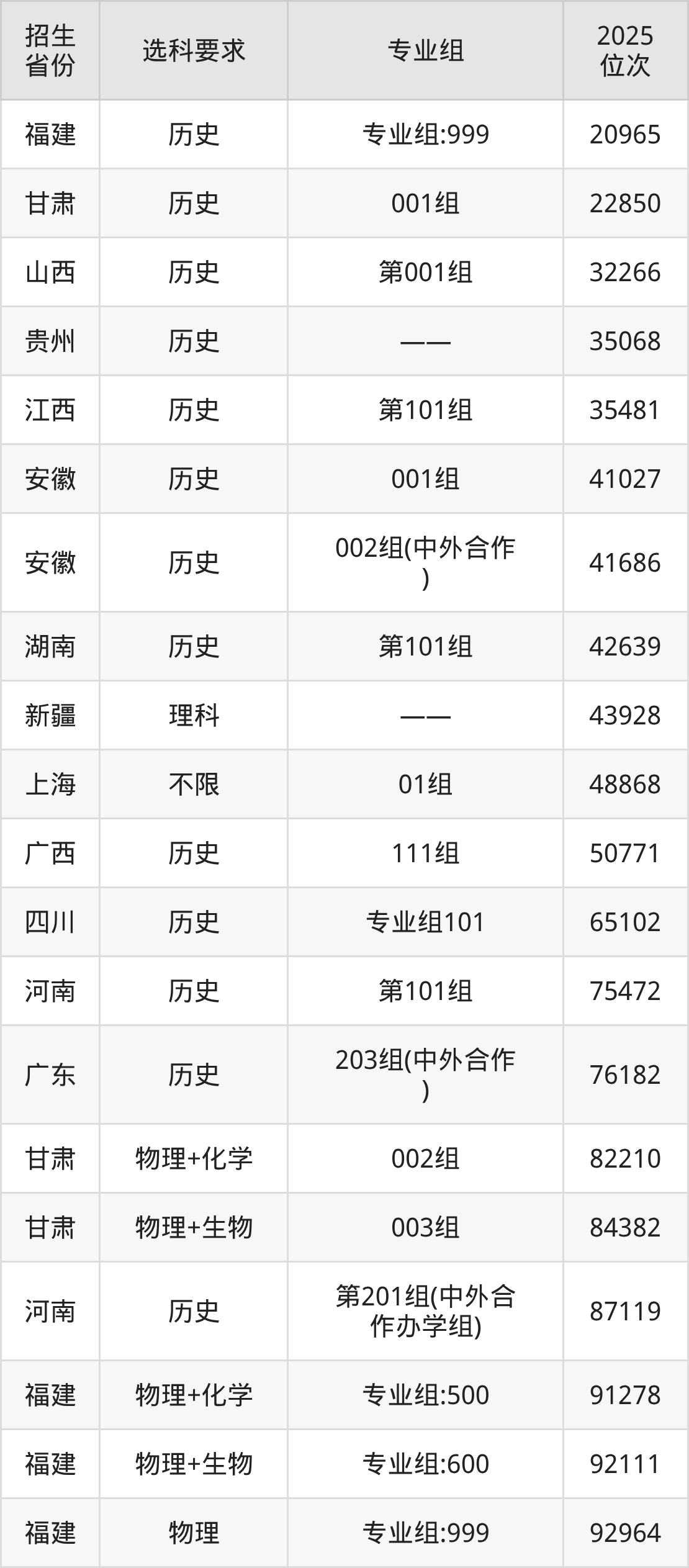 福建農(nóng)林大學(xué)金山學(xué)院2025年在全國各省的位次差異較大,最高位次是20965位(福建歷史類)、最低位次是330445位(河南物理類)。各省具體位次請看下圖: