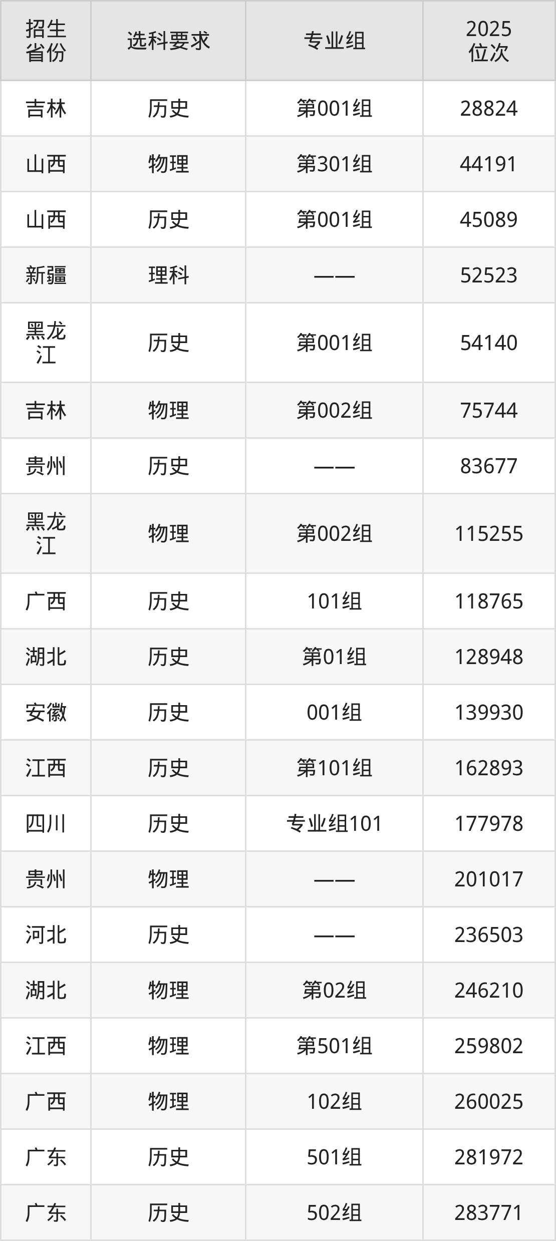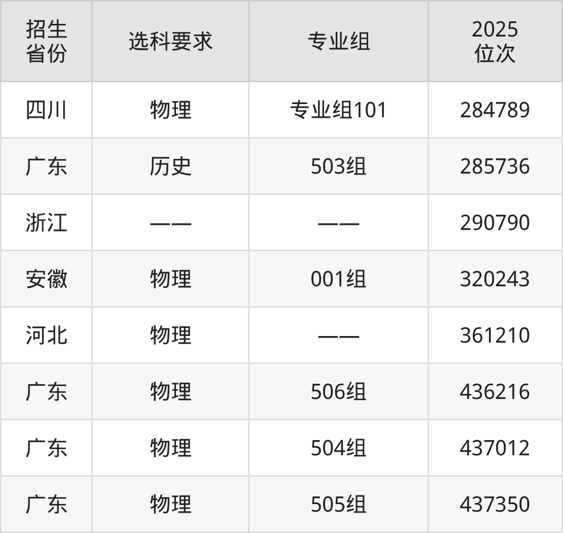廣東碧桂園職業(yè)學院2025年在全國各省的位次差異較大,最高位次是28824位(吉林歷史類)、最低位次是437350位(廣東物理類)。各省具體位次請看下圖: