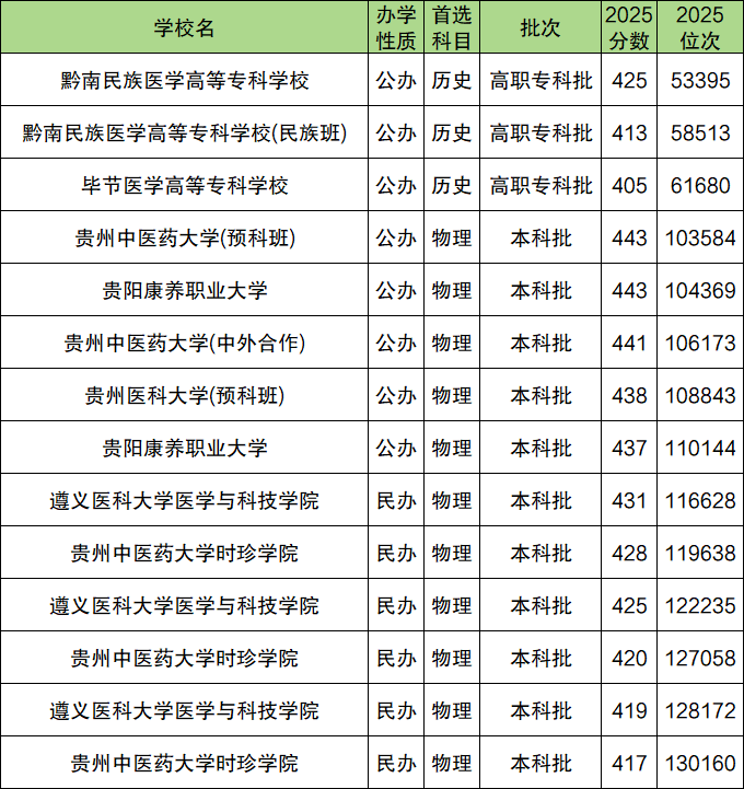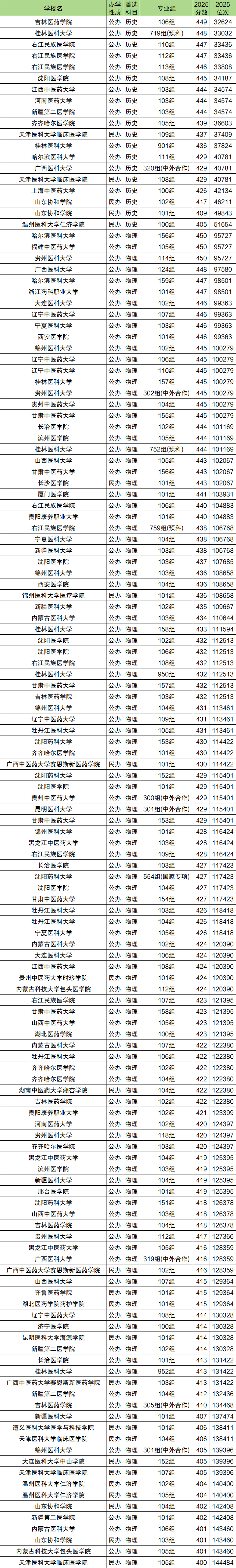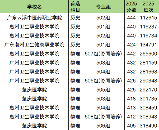 2025年廣東省400-450分的醫(yī)科大學(xué)中,歷史類有3所,物理有3所,均為??婆猩?。