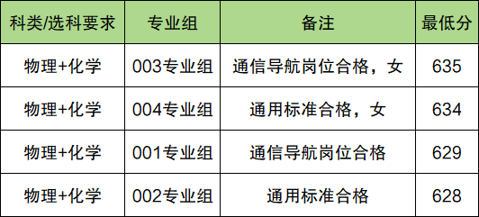 | 物理+化學(xué) | 003專業(yè)組 | 通信導(dǎo)航崗位合格 | 647 |
