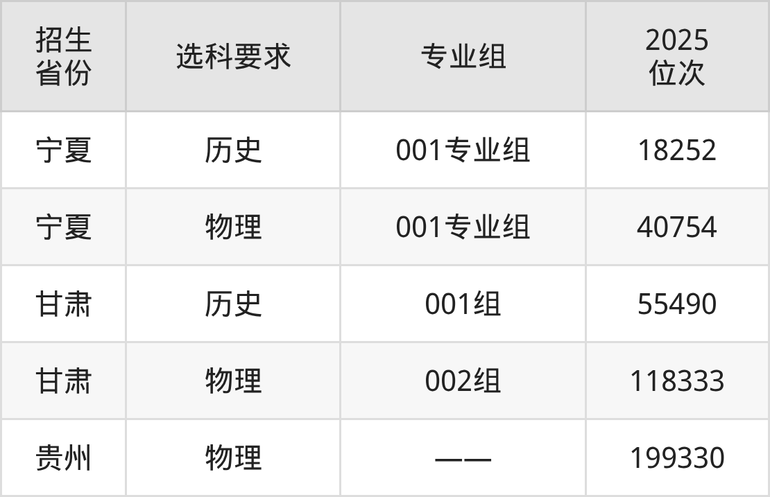 河南質(zhì)量工程職業(yè)學(xué)院2025年在全國各省的位次差異較大,最高位次是18252位(寧夏歷史類)、最低位次是199330位(貴州物理類)。各省具體位次請看下圖: