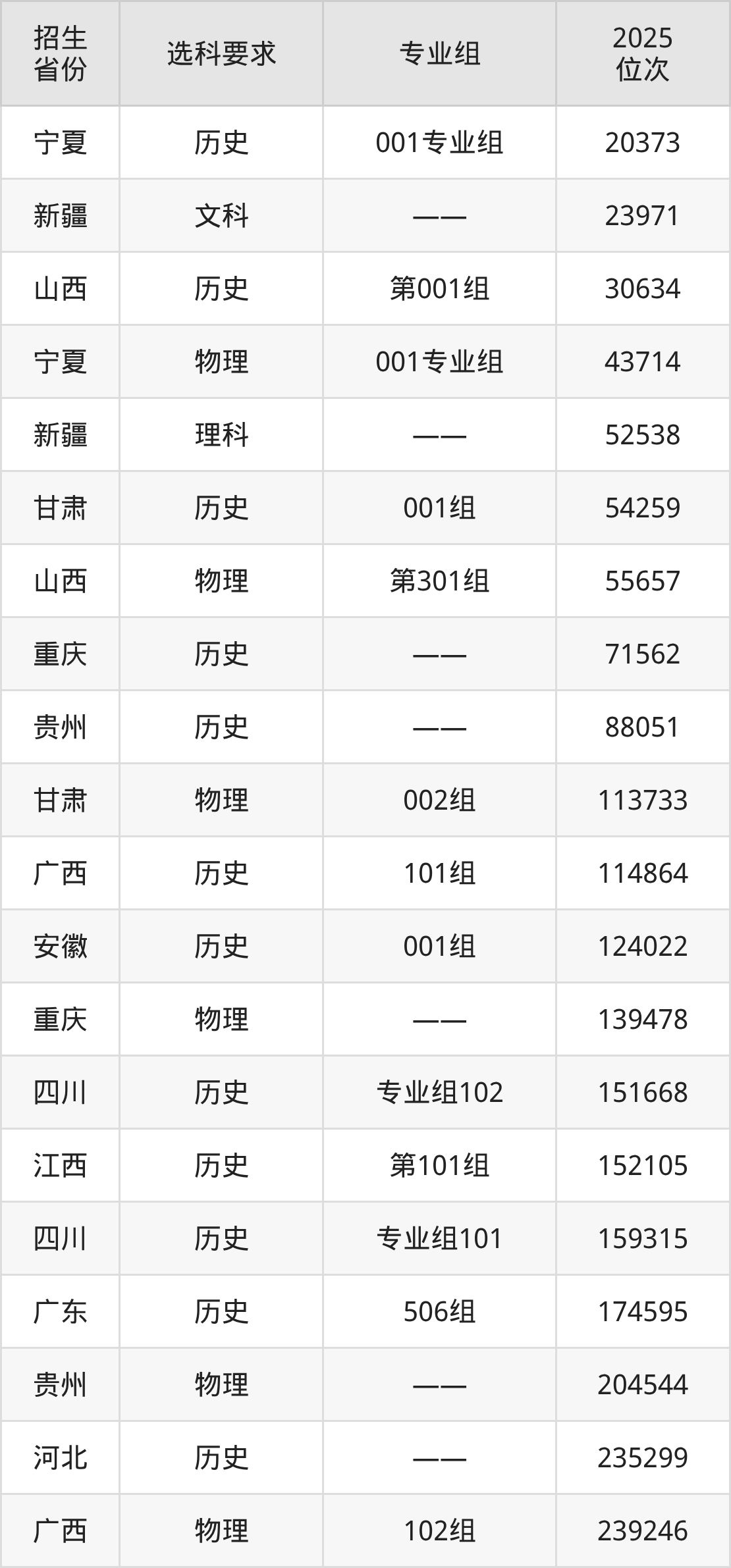 重慶傳媒職業(yè)學(xué)院2025年在全國(guó)各省的位次差異較大,最高位次是20373位(寧夏歷史類(lèi))、最低位次是618104位(山東)。各省具體位次請(qǐng)看下圖: