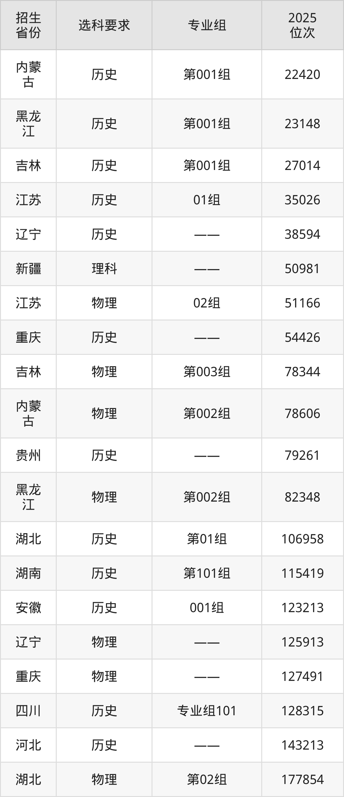 白城職業(yè)技術(shù)學(xué)院2025年在全國(guó)各省的位次差異較大,最高位次是22420位(內(nèi)蒙古歷史類)、最低位次是611456位(山東)。各省具體位次請(qǐng)看下圖: