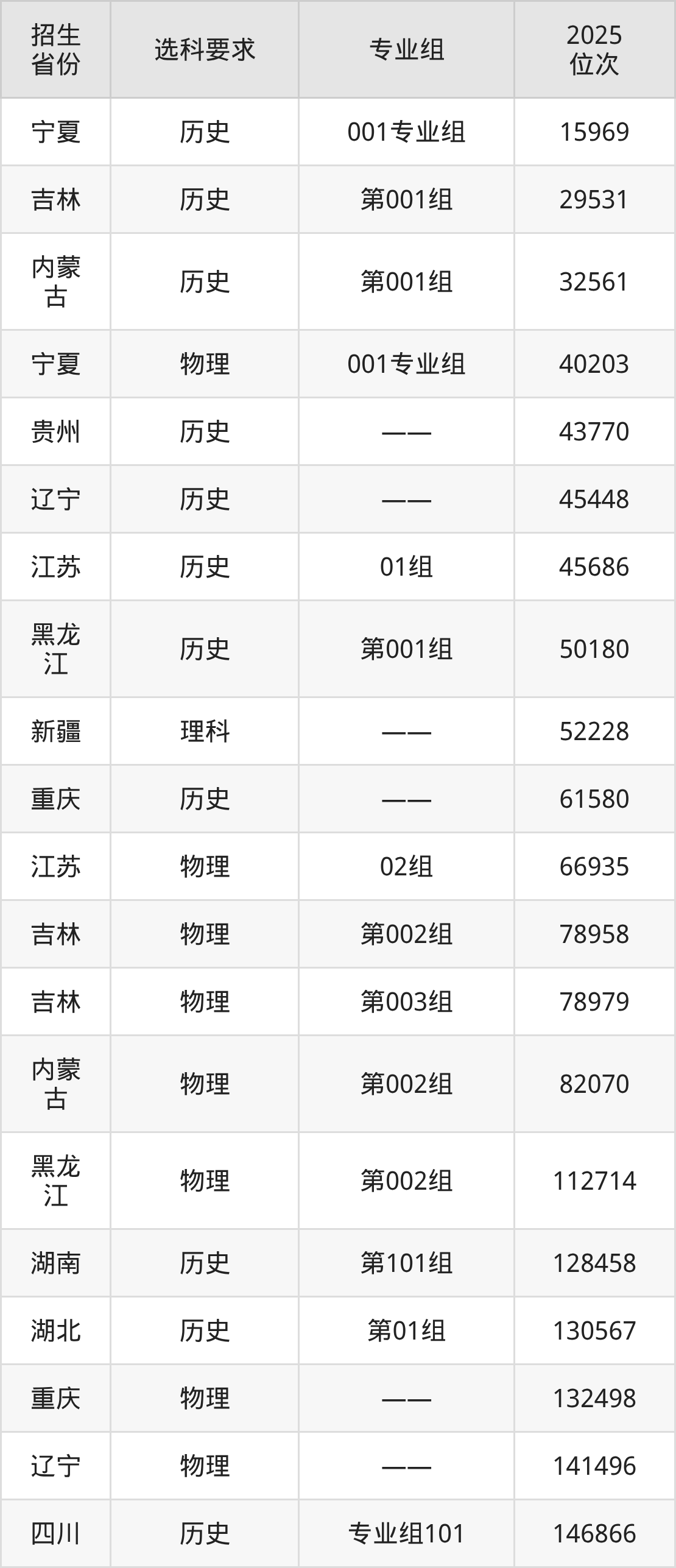 長(zhǎng)春健康職業(yè)學(xué)院2025年在全國(guó)各省的位次差異較大,最高位次是15969位(寧夏歷史類(lèi))、最低位次是678929位(山東)。各省具體位次請(qǐng)看下圖: