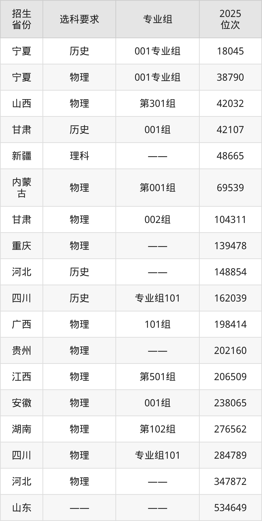 漢中職業(yè)技術(shù)學(xué)院2025年在全國各省的位次差異較大,最高位次是18045位(寧夏歷史類)、最低位次是534649位(山東)。各省具體位次請(qǐng)看下圖: