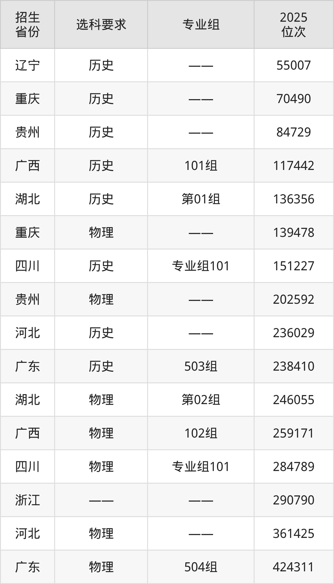 云南商務(wù)職業(yè)學(xué)院2025年在全國各省的位次差異較大,最高位次是55007位(遼寧歷史類)、最低位次是424311位(廣東物理類)。各省具體位次請看下圖: